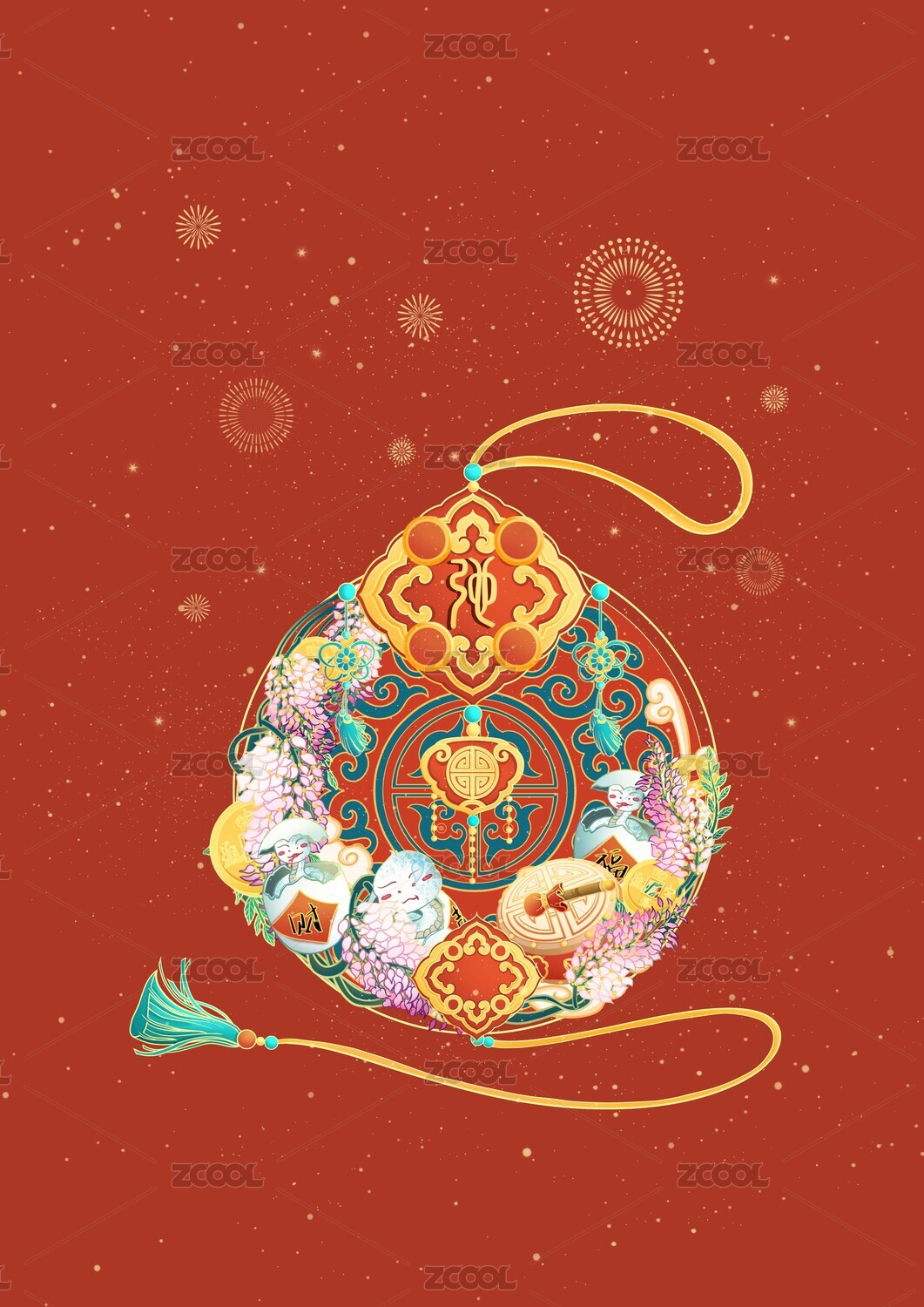 十二生肖,生肖,属相,鼠年,鼠,老鼠,生肖鼠,鼠年插画,国风,插画