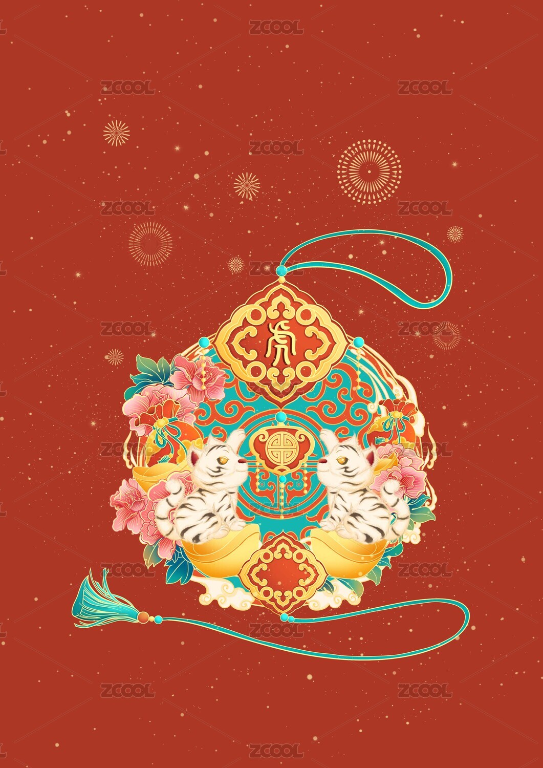 十二生肖国风封面插画寅虎