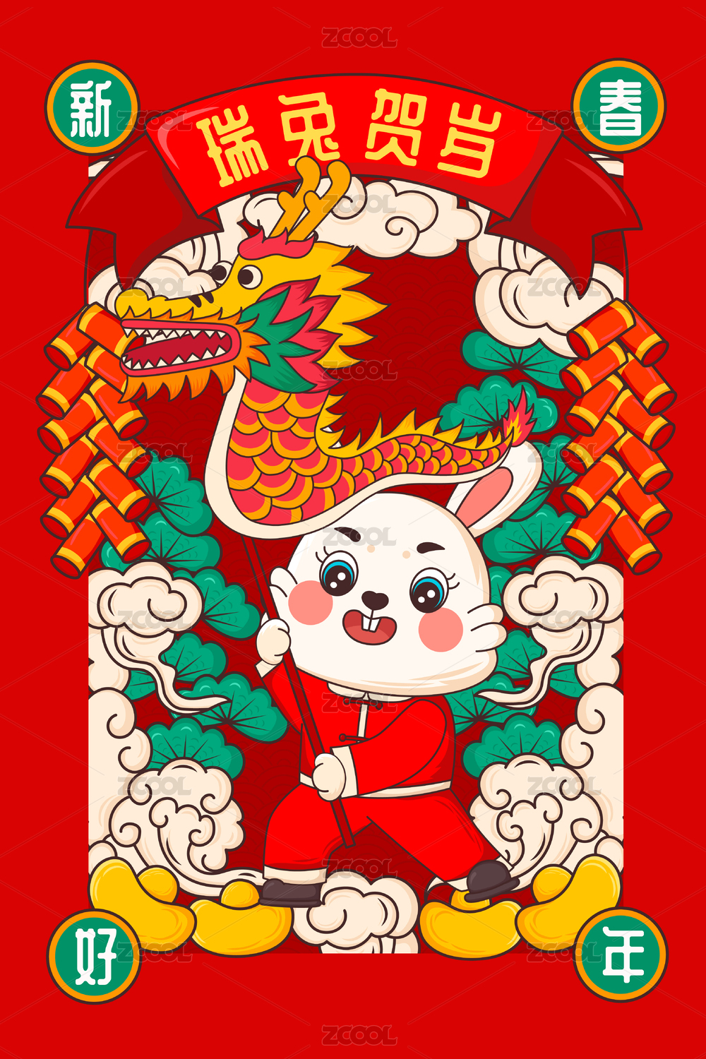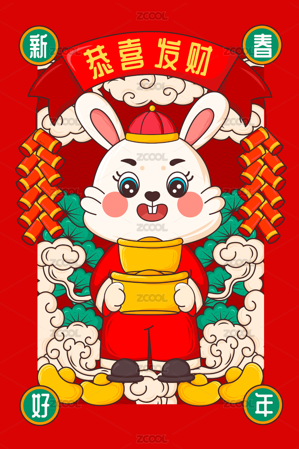 门神,兔年,春节,国潮,国风,小白兔,兔子,兔,节日,庆祝