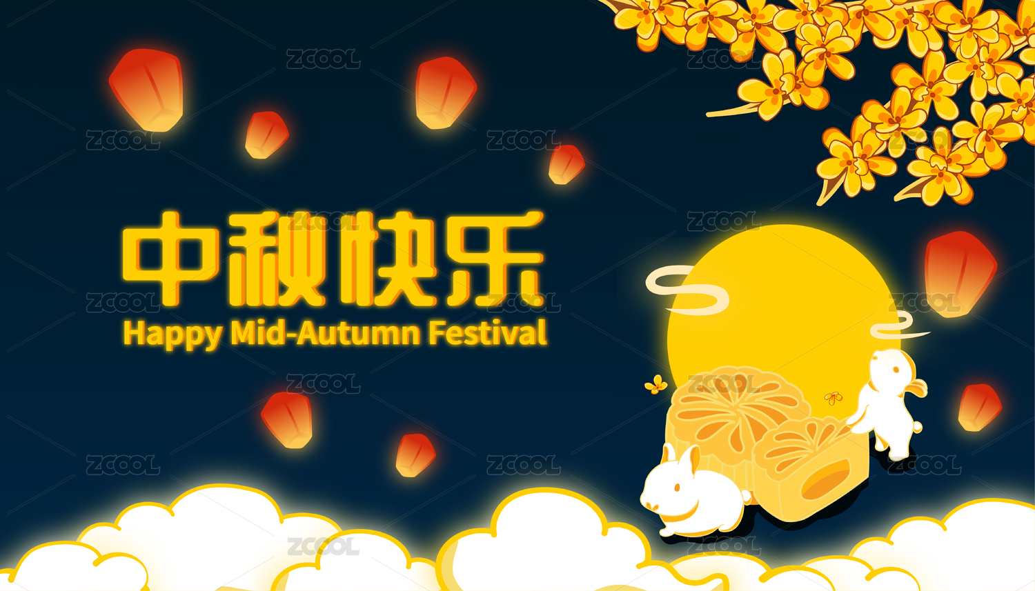 中秋节月饼兔子桂花灯笼矢量插画海报
