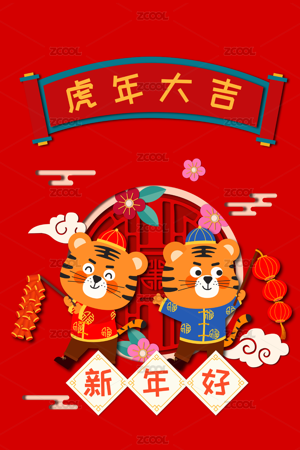 节日,庆祝,新年,虎,老虎,虎年,春节,生肖,矢量,插画