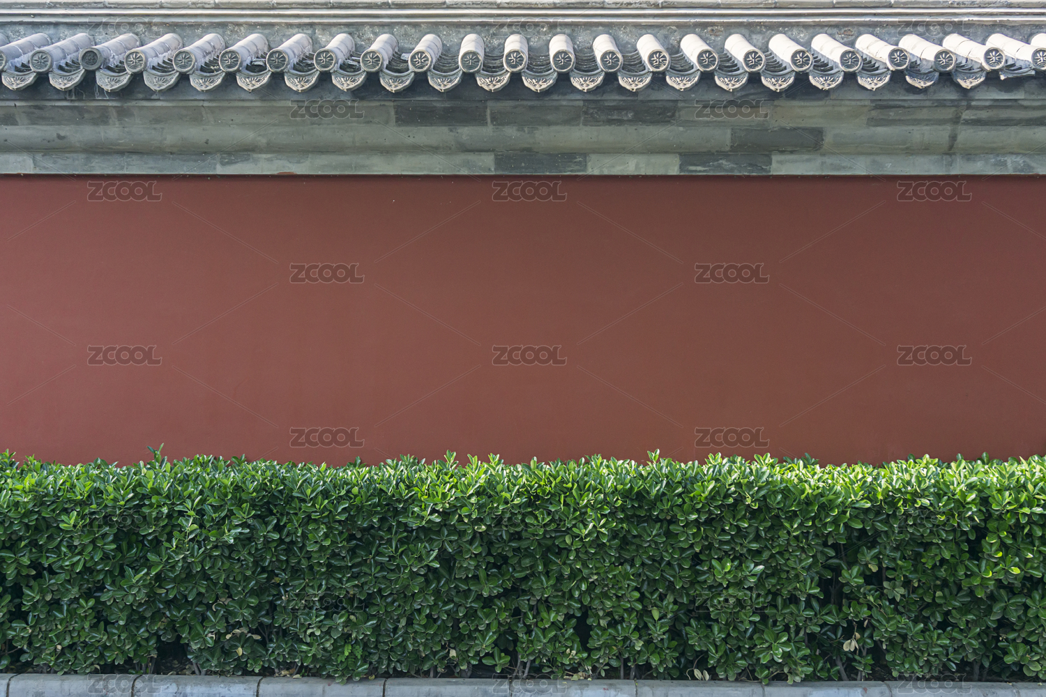 中国古建筑围墙,红墙绿瓦墙壁背景