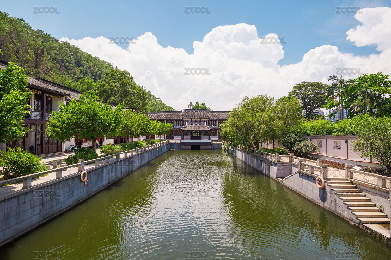 广州南沙蒲洲花园河流中式传统园林景观