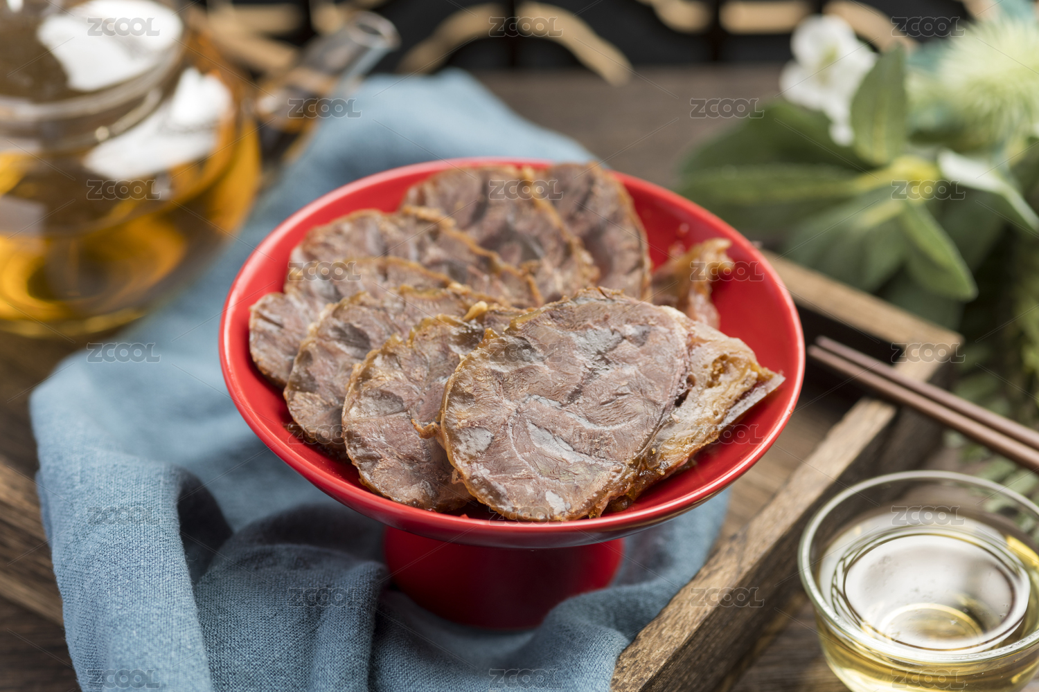 酱羊肉,酱肉,烧羊肉,羊肉,切片,冷荤,托盘,古窗棂,中国菜,木桌面