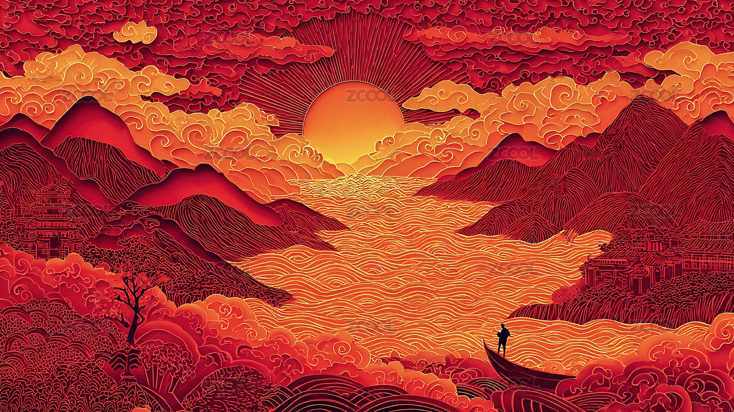 HEST2022,国风,国潮,端午,节日,版画,包装,龙舟,赛龙舟,山水