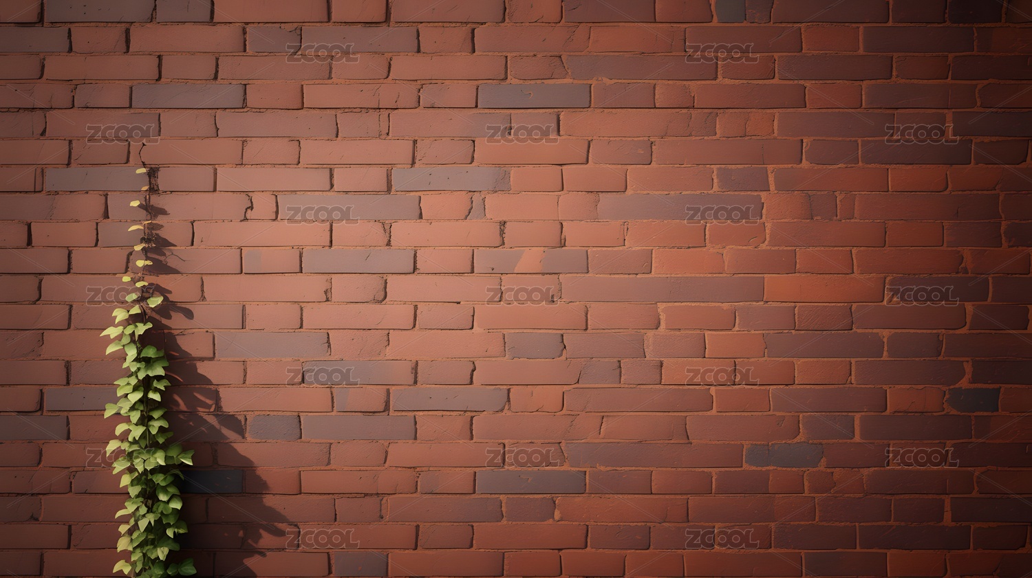 红砖墙背景绿色植物