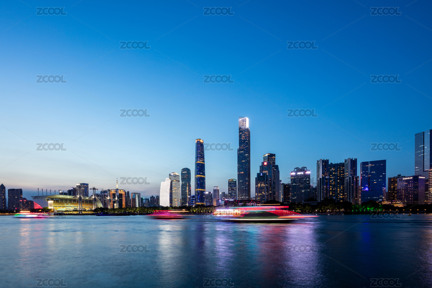 广州,城市,夜景,天际线,海珠区,琶洲,天空,蓝色,云,珠江