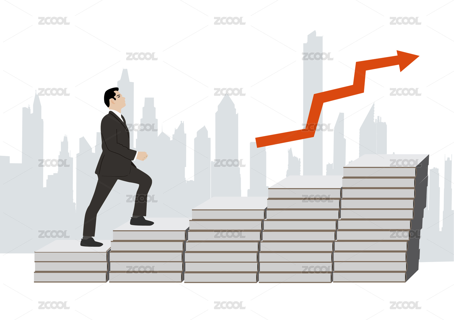 白底商务金融概念插画,职业人士就业上升趋势