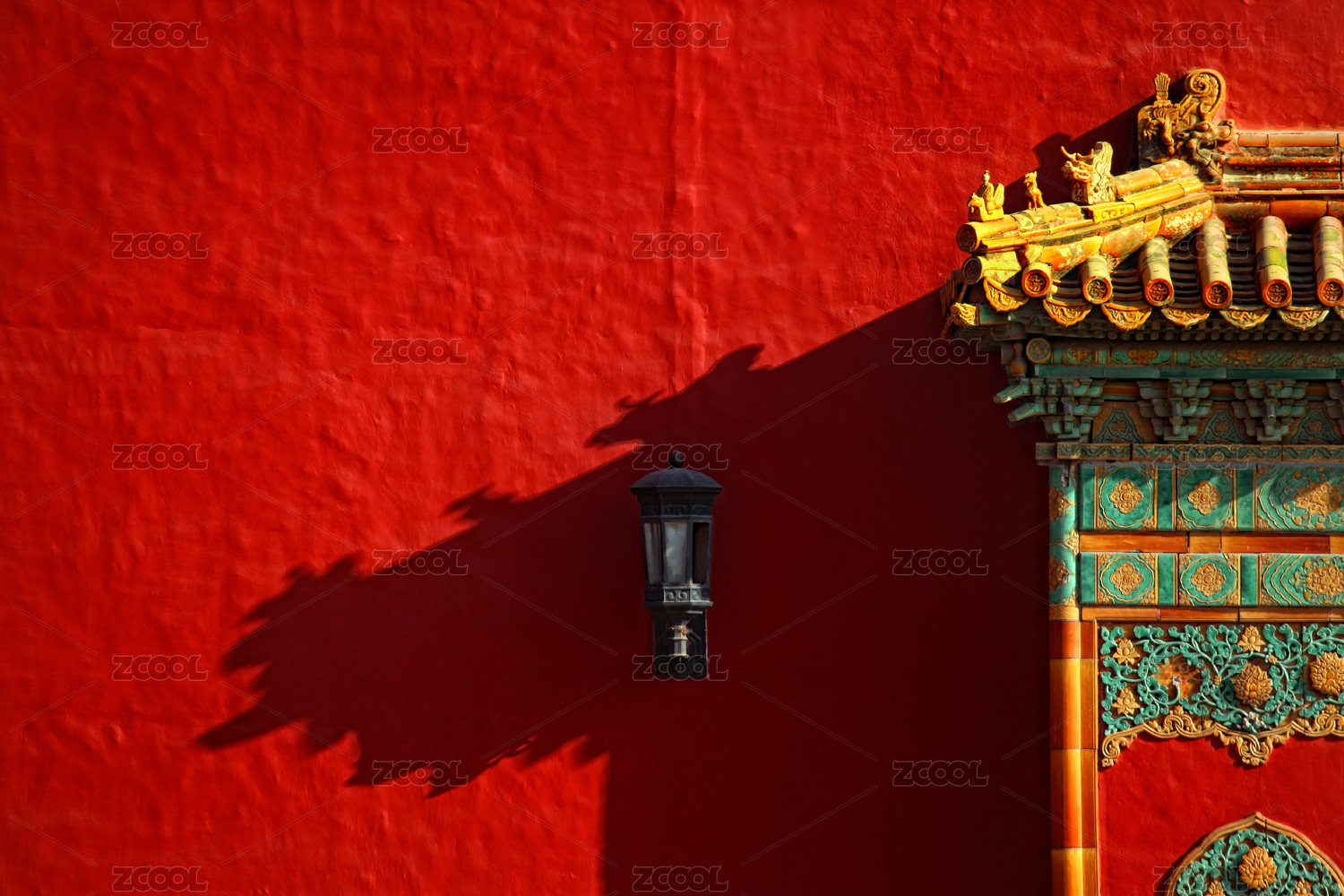 屋檐、脊兽与红色宫墙上的影子