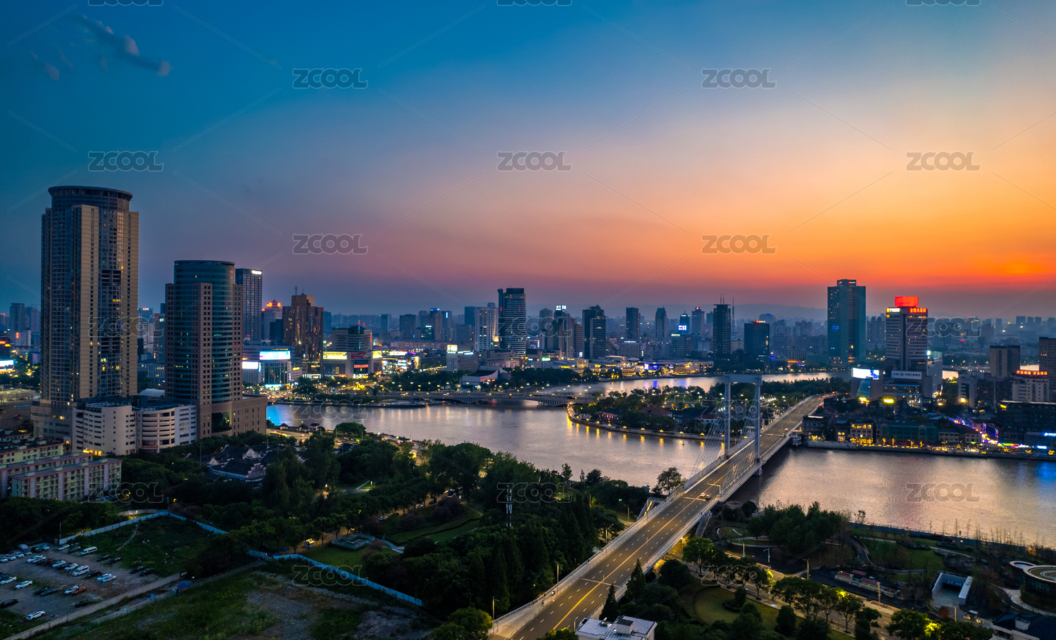 湖泊现代城市建筑大楼繁荣夜景高清广告海报
