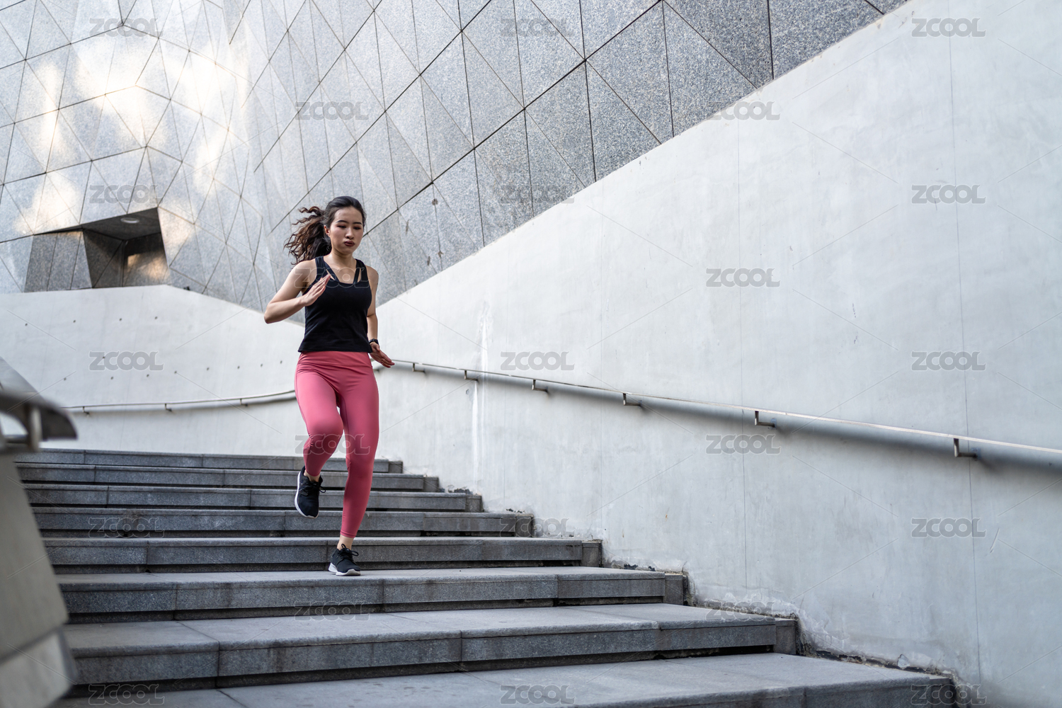 女运动员坐在服用运行,让决心和动力准备好迎接挑战,断绝关系的楼梯。