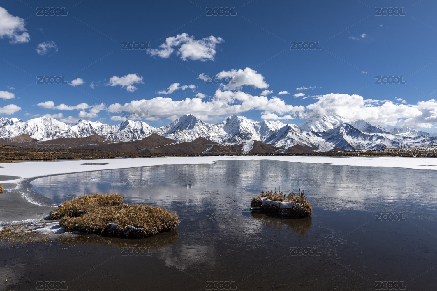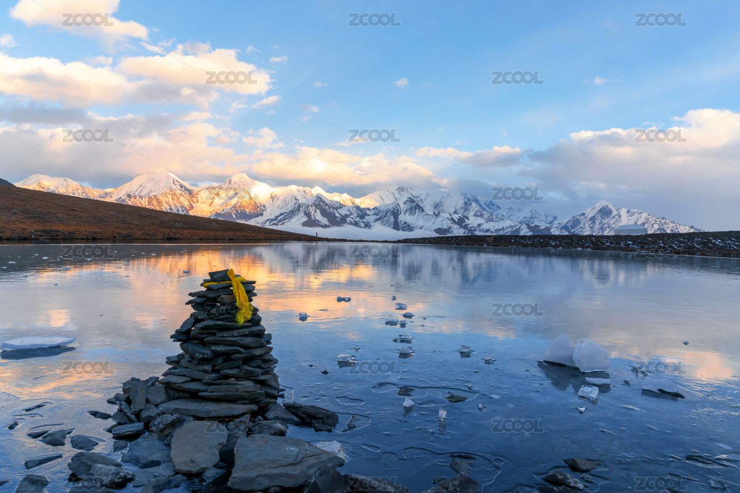 中国四川,川西,甘孜,甲根坝,冷噶措,贡嘎,雪山,湖,海子,天空