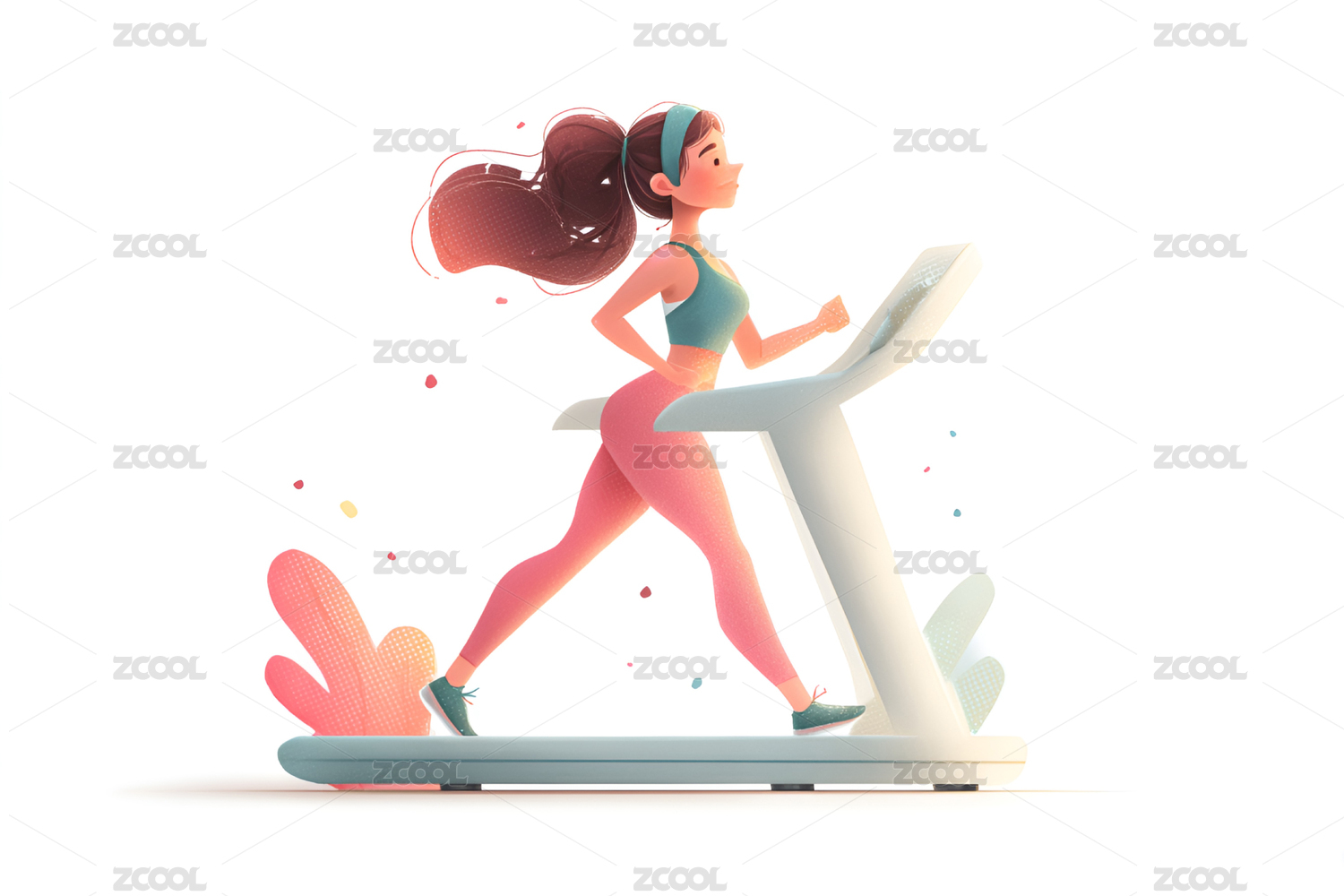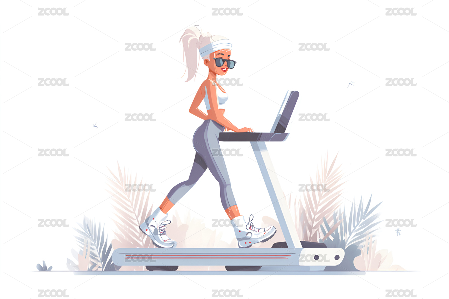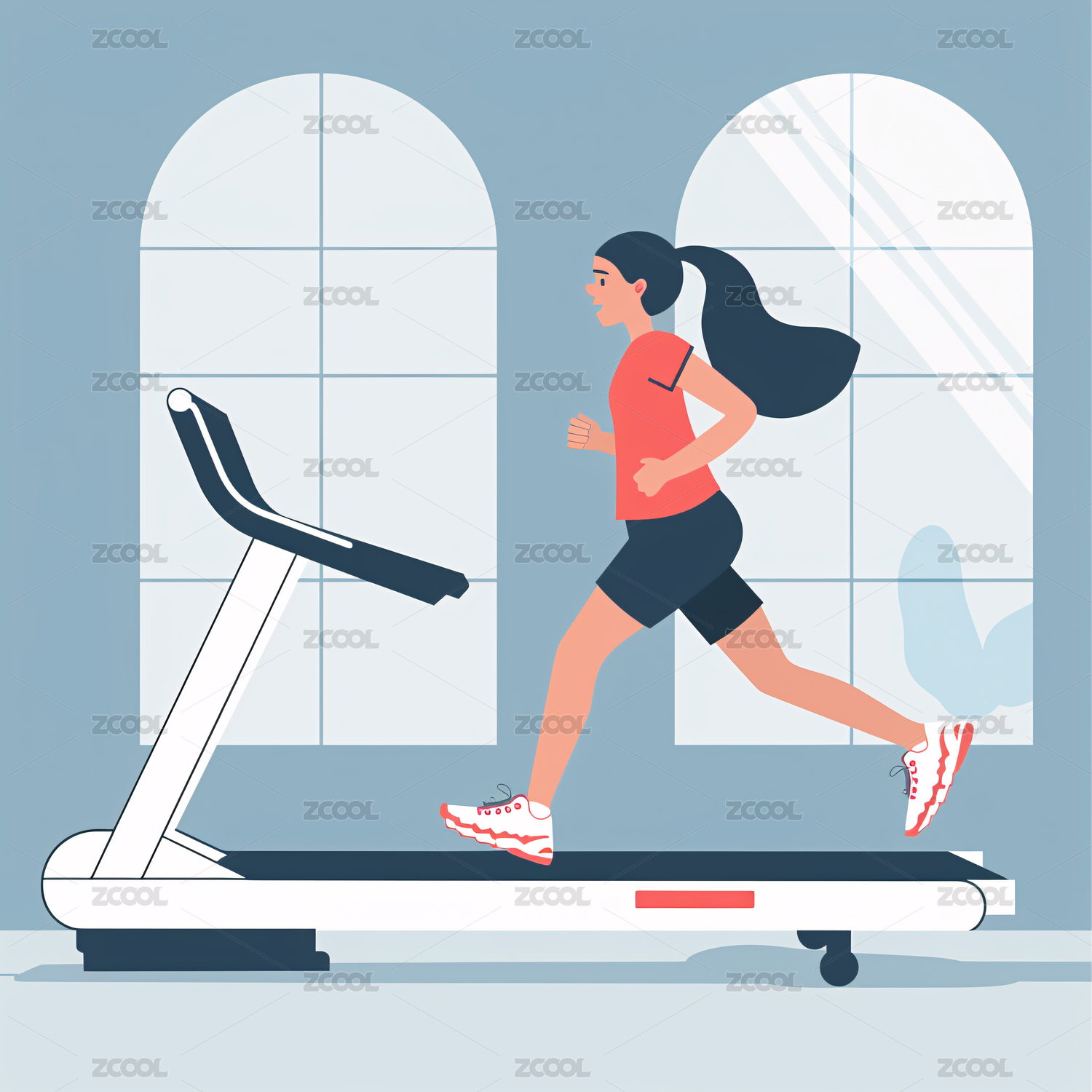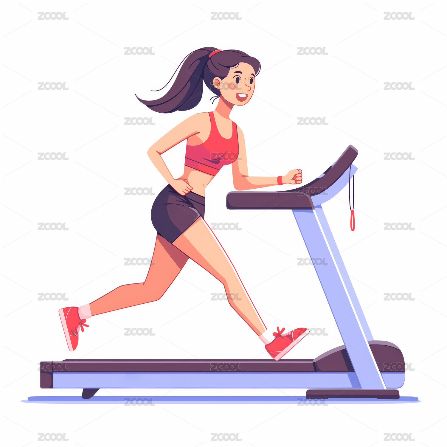 清新明亮跑步机女性扁平插画暖色日漫绘画