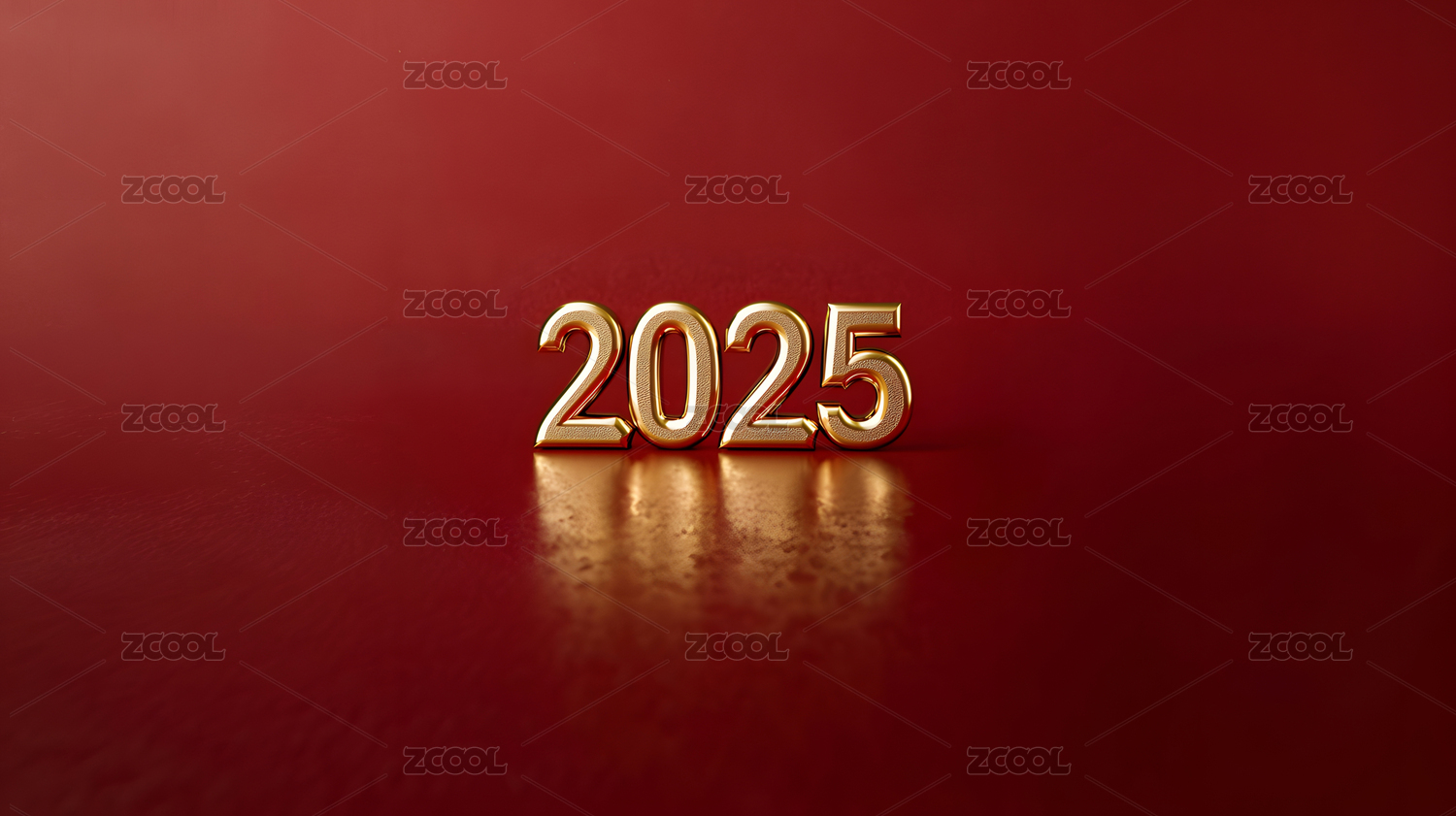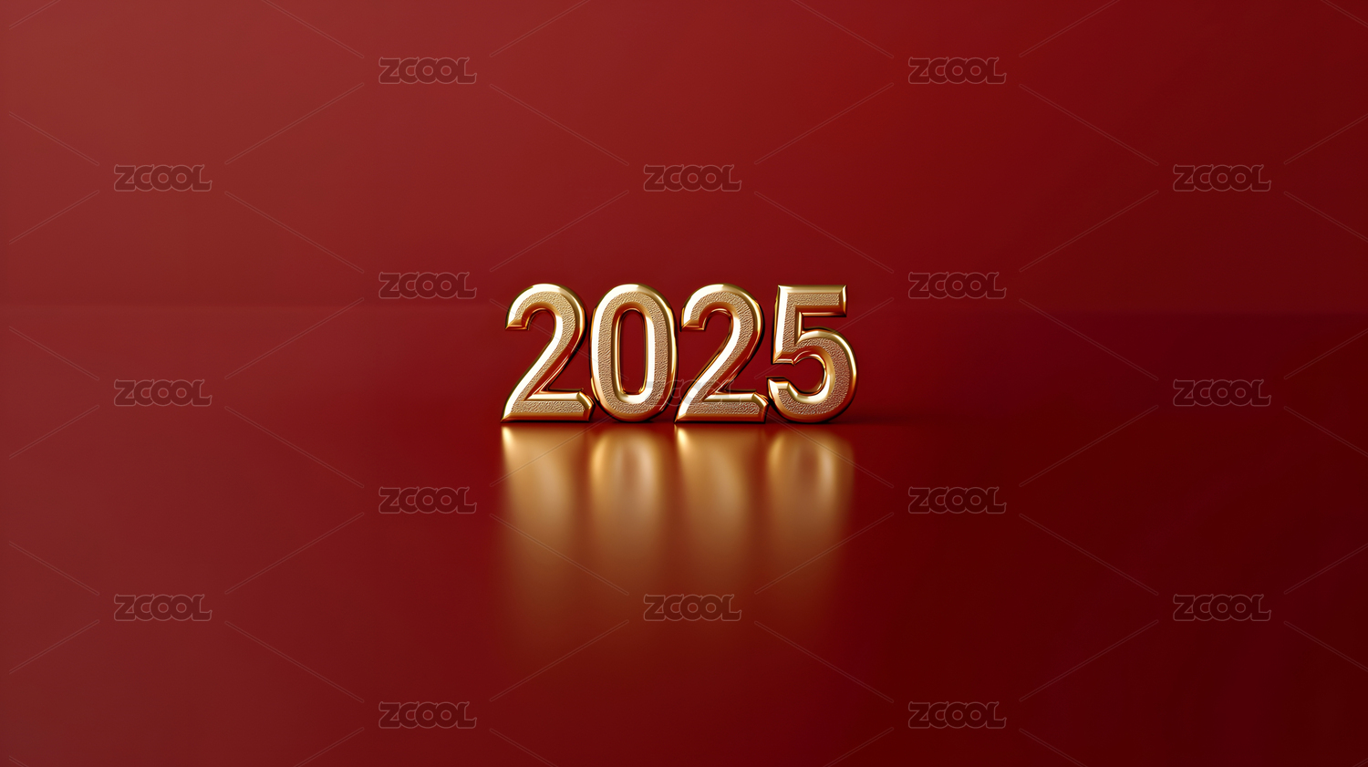 2025,2025年,3D,阿拉伯数字,背景,标志,红色,黄金,金色,金属