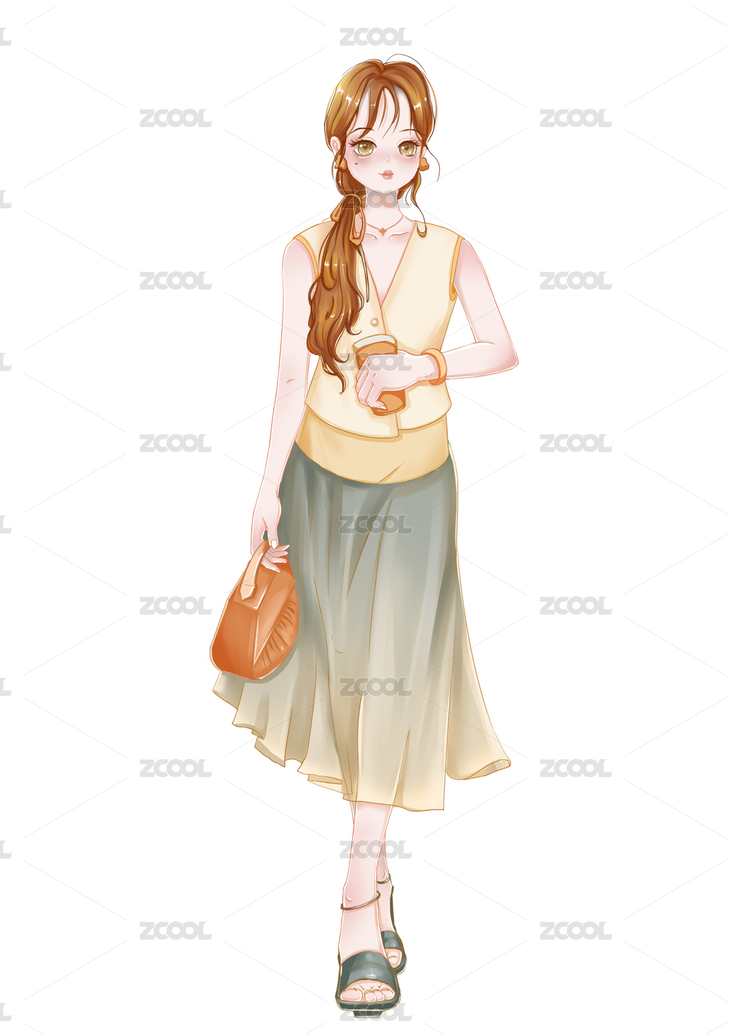 小清新手绘半写真少女插画