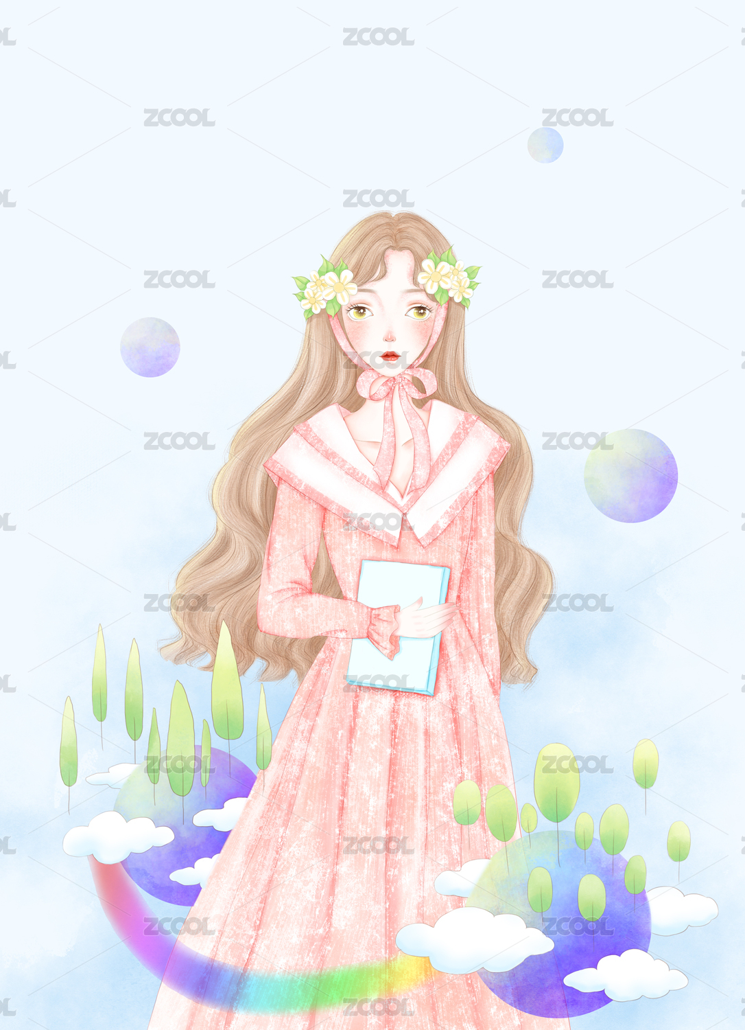 清新少女风插画