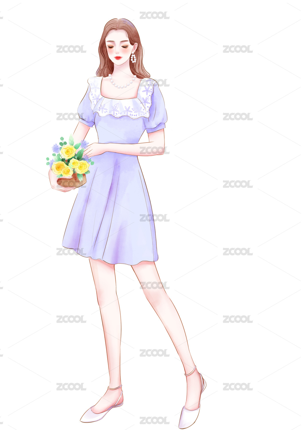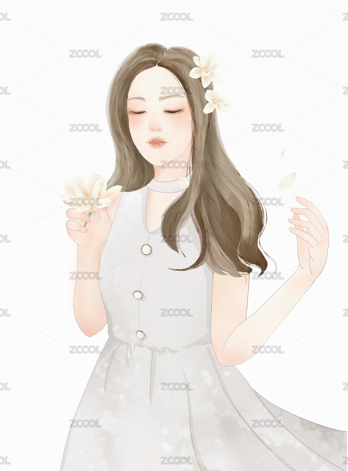 手拿玉兰花的少女立绘插画