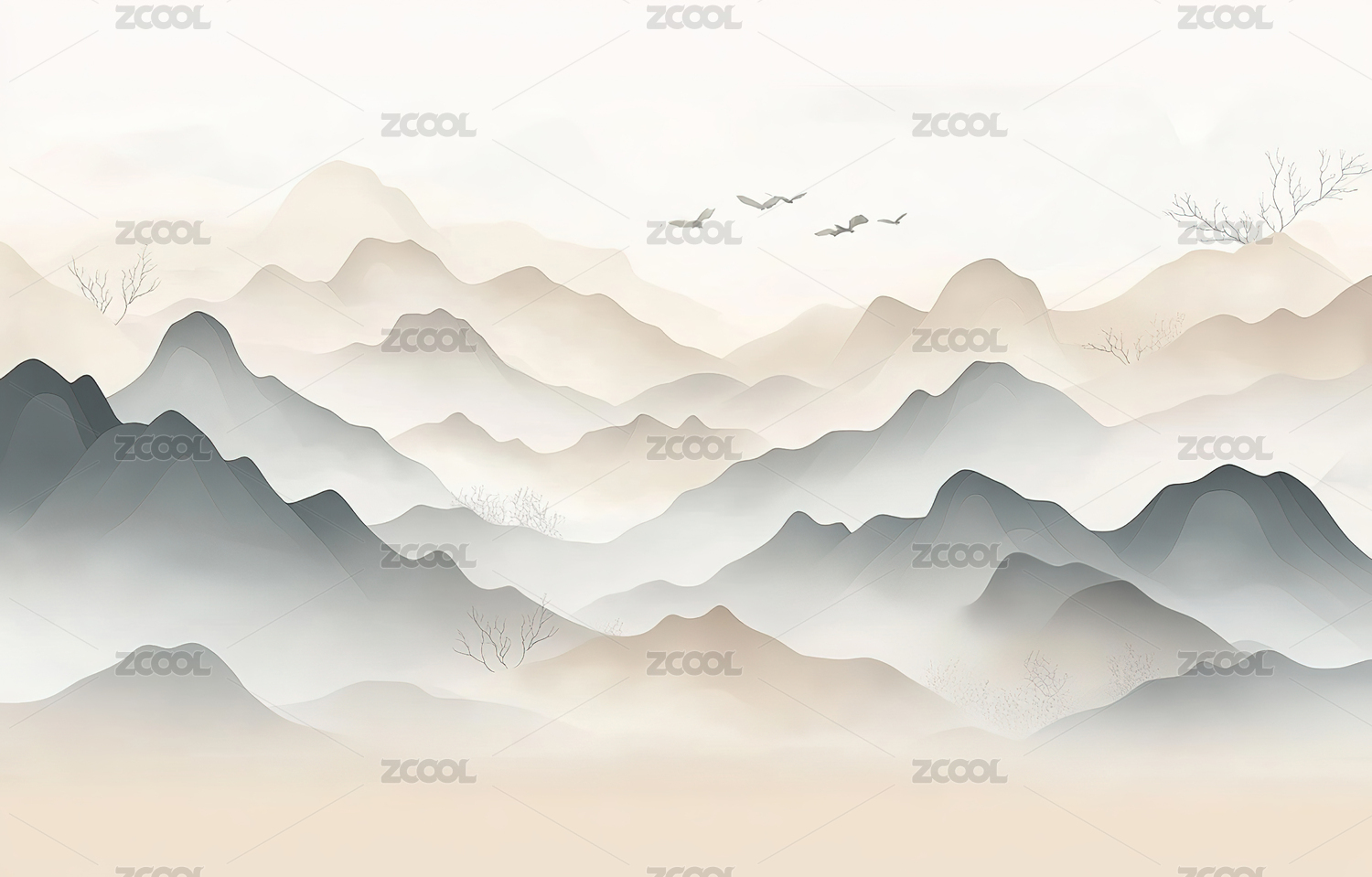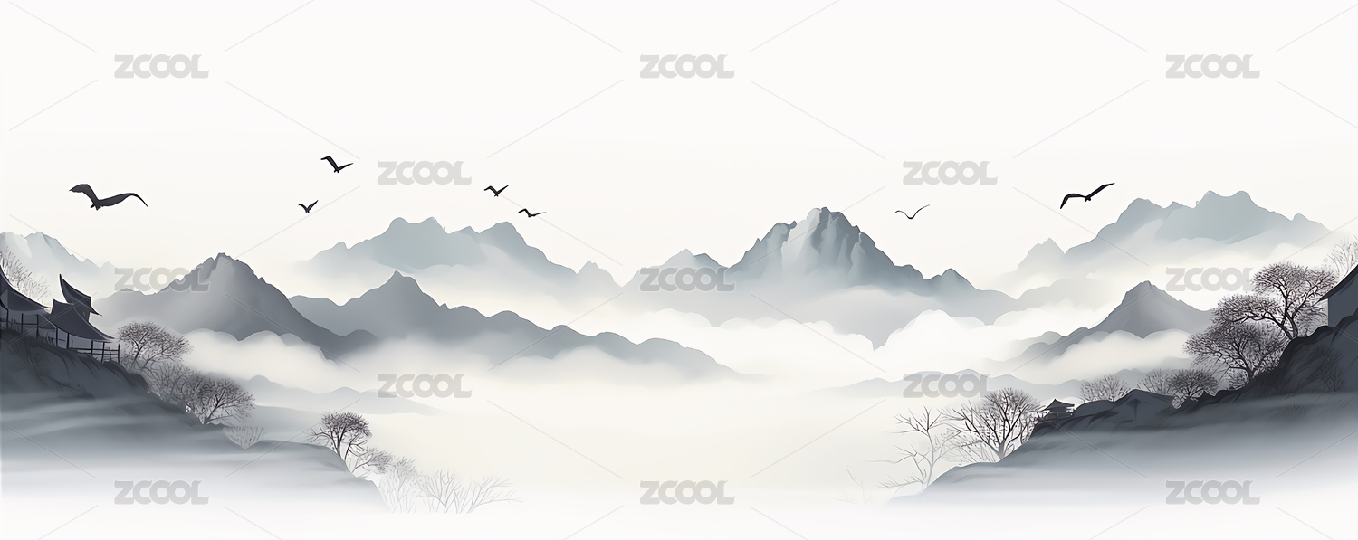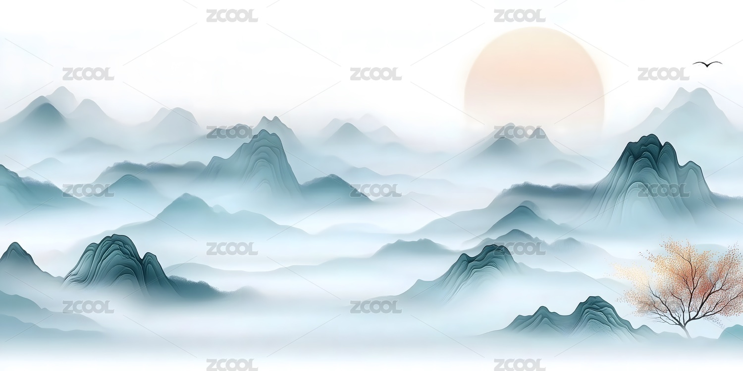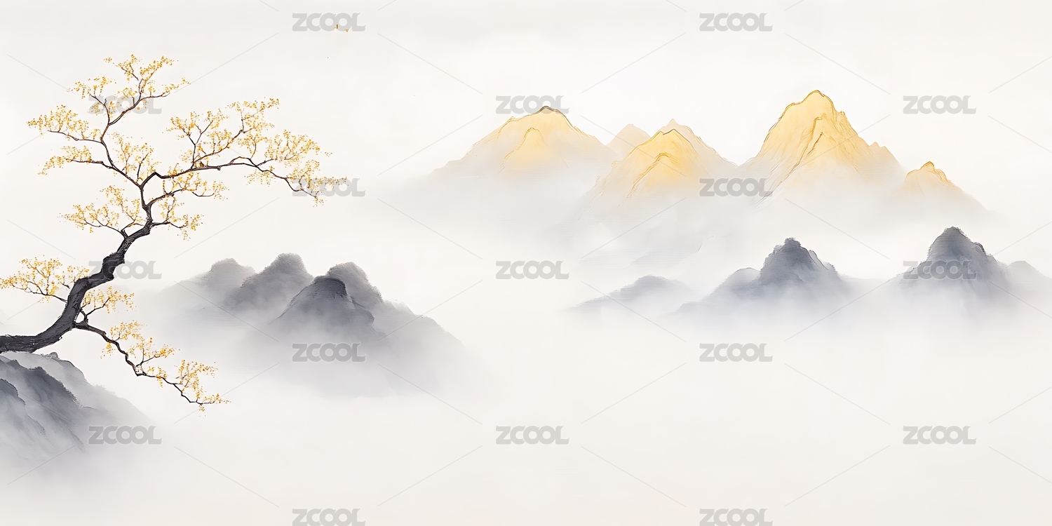新中式淡雅意境山水背景图