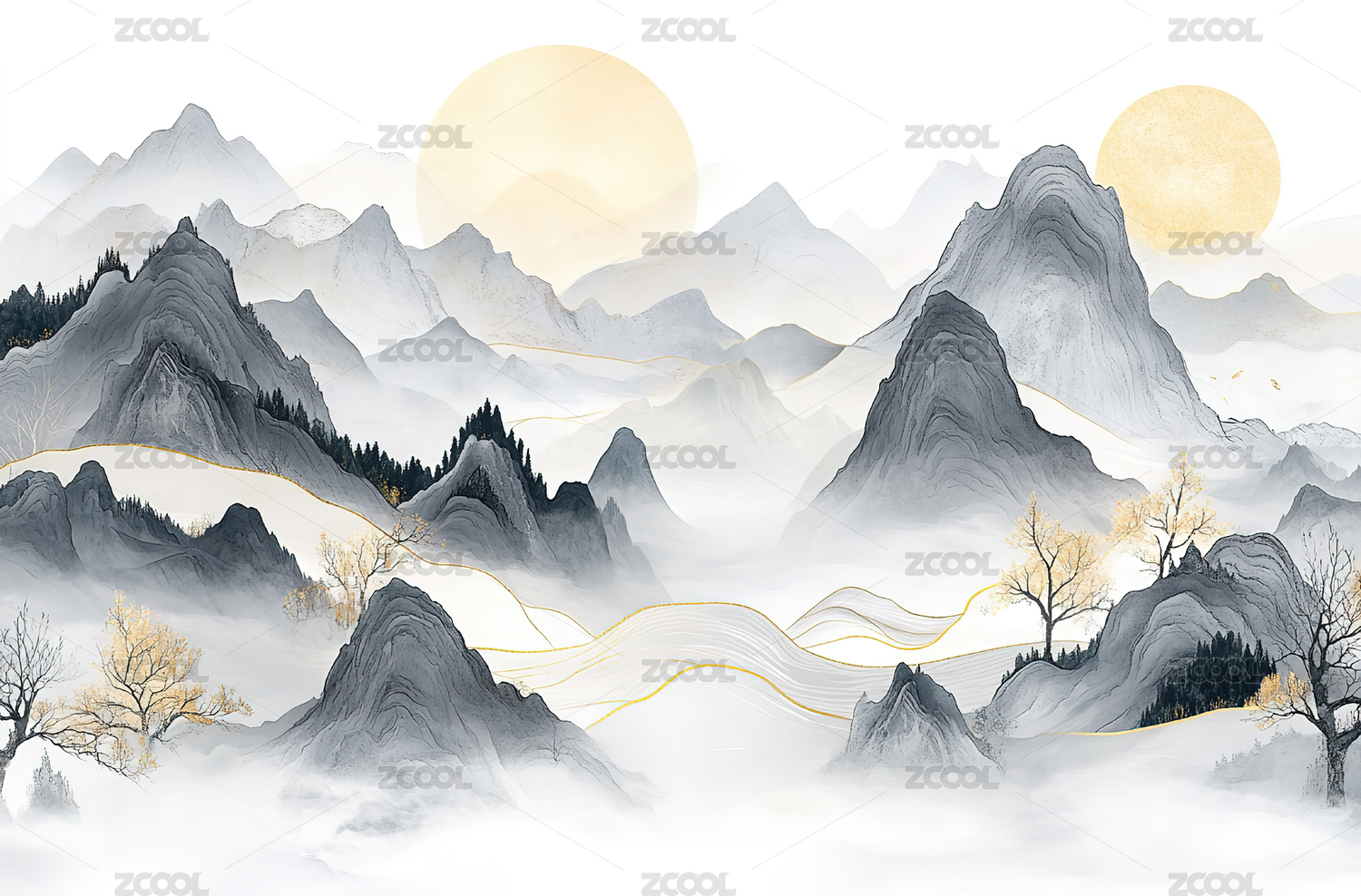水墨山河金色图景