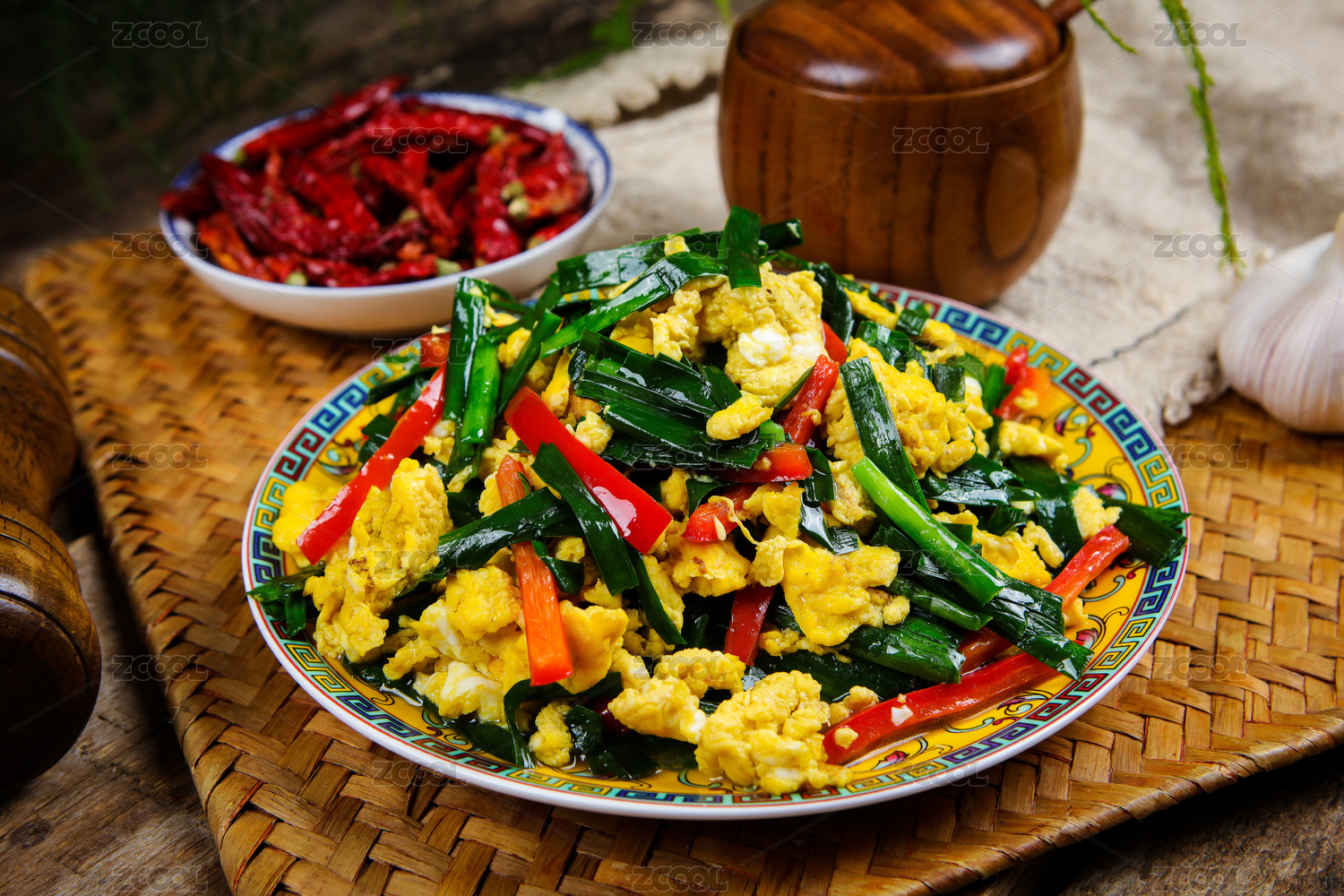 美味农家菜红辣椒蒜苔炒鸡蛋