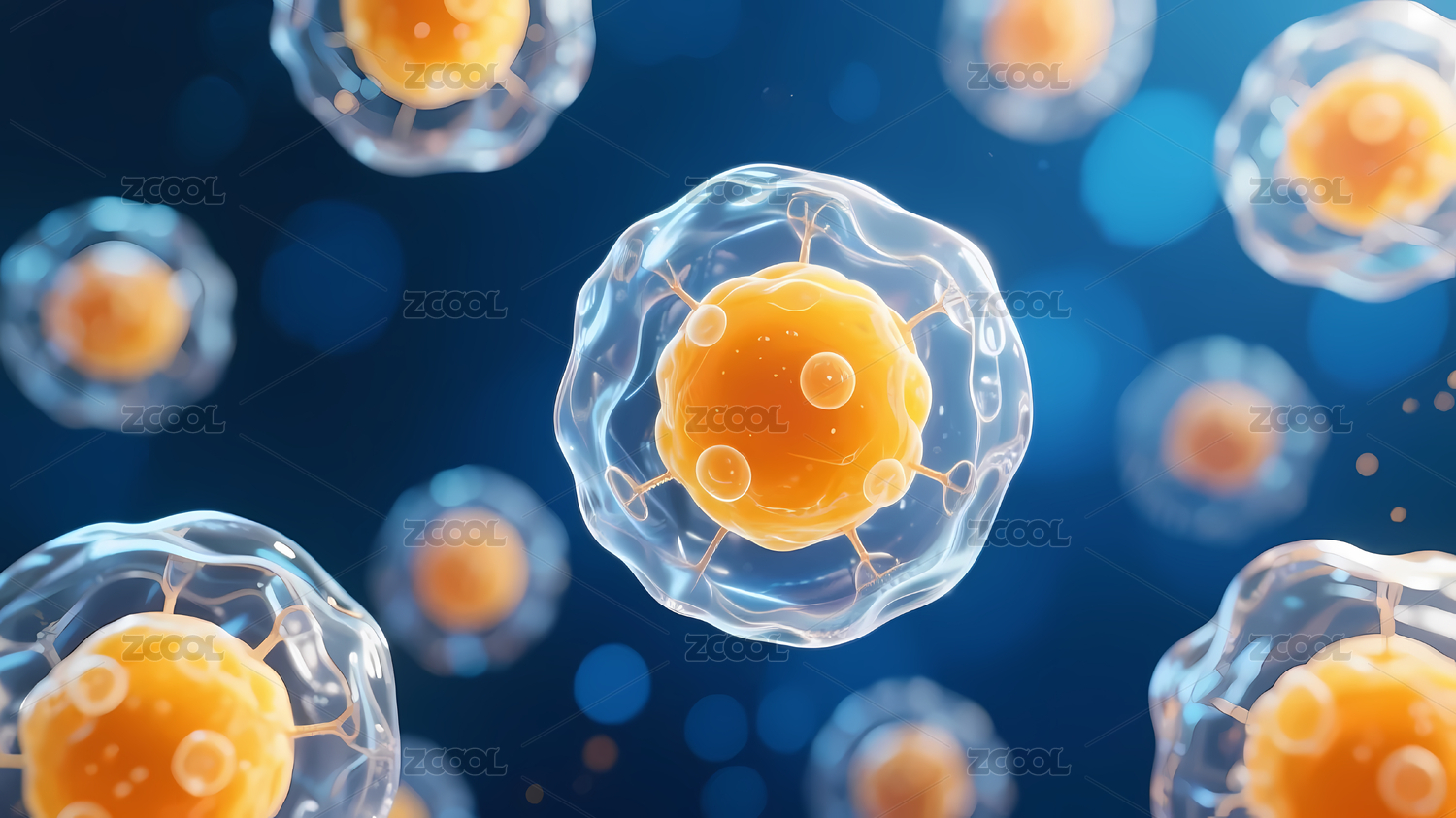 深蓝背景下的细胞结构