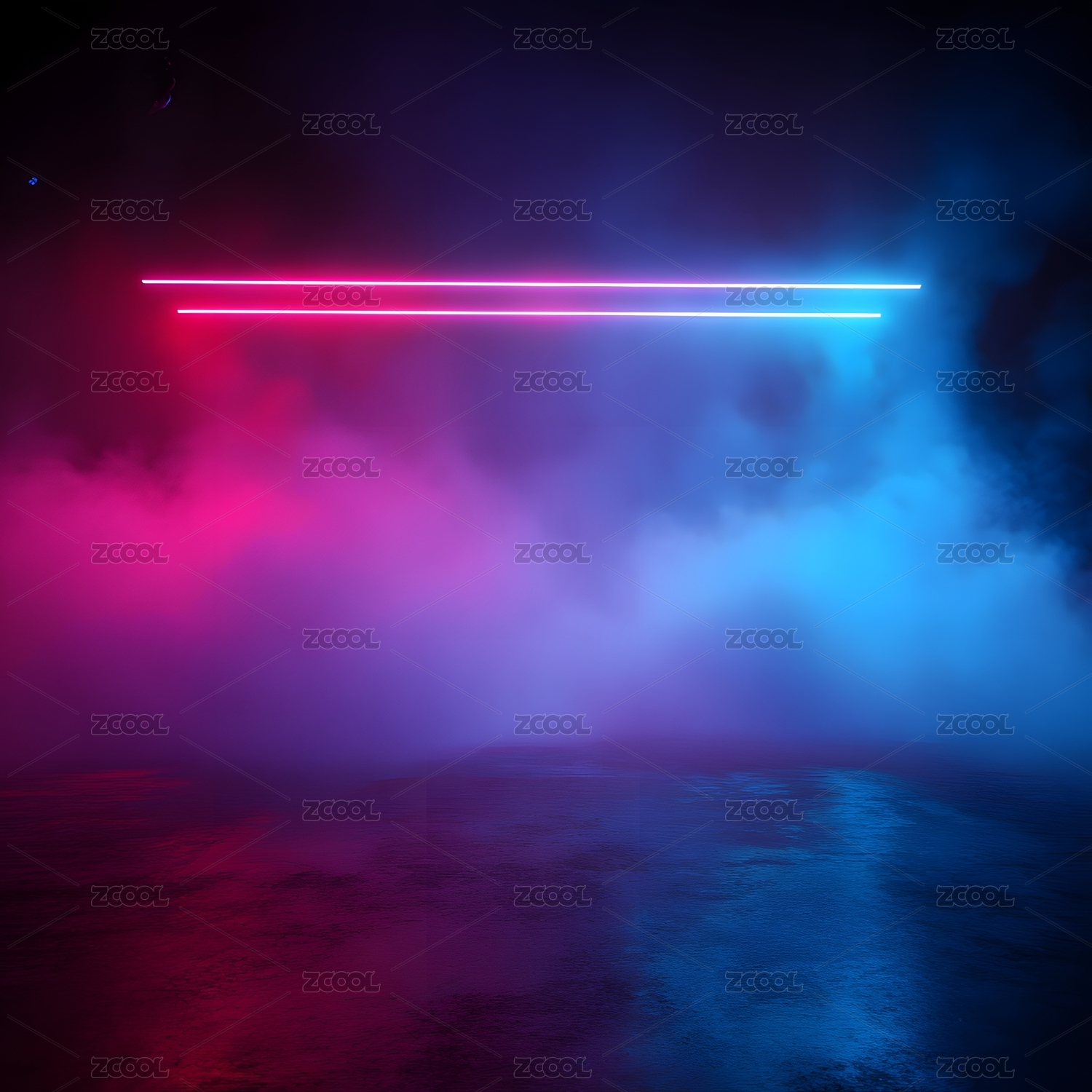红蓝霓虹光带烟雾暗室发光抽象背景图