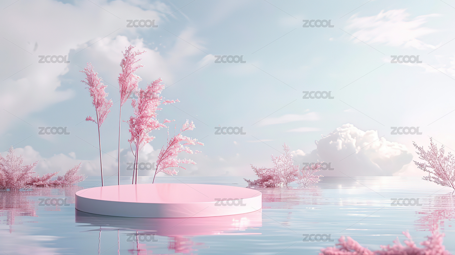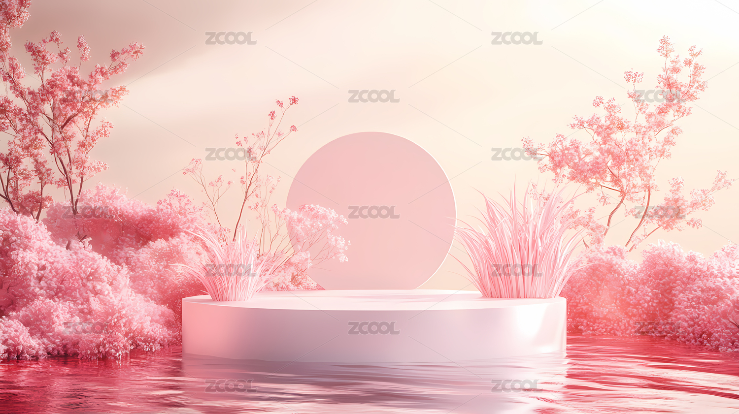 3D粉色小清新水面圆形电商产品展台
