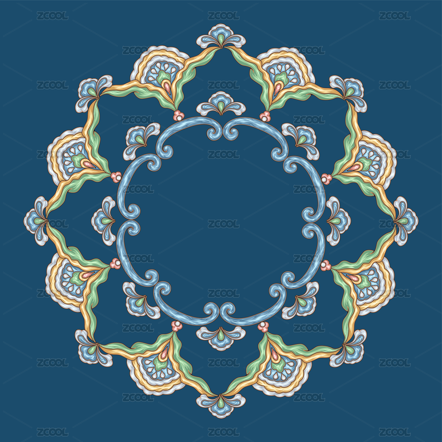 传统的圆形彩色花边装饰花纹图案