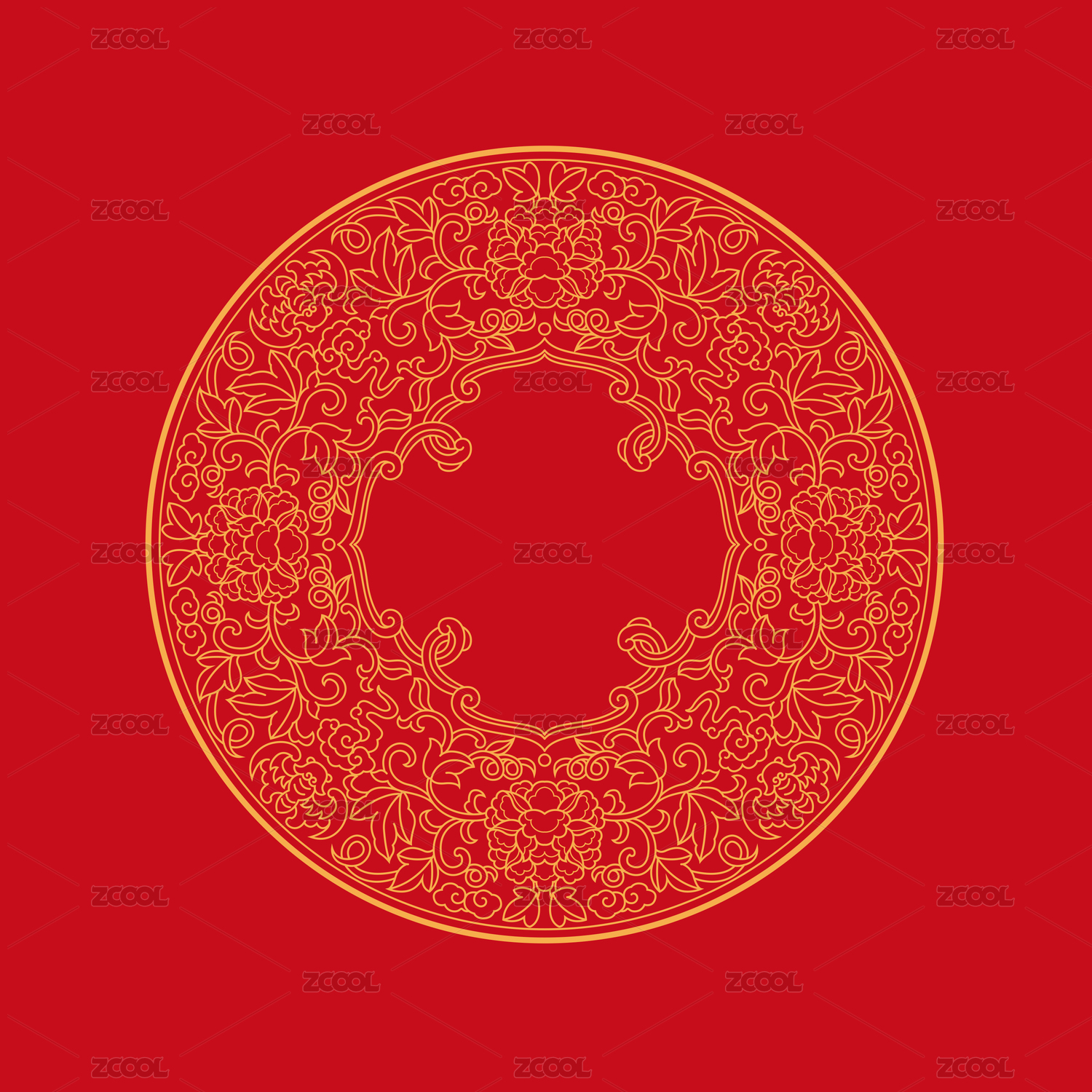 金色传统花纹图案,红色背景