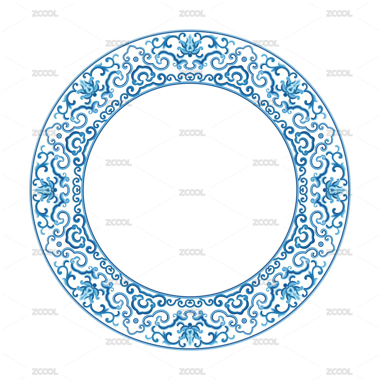 中国传统的蓝色圆形古典花纹图案