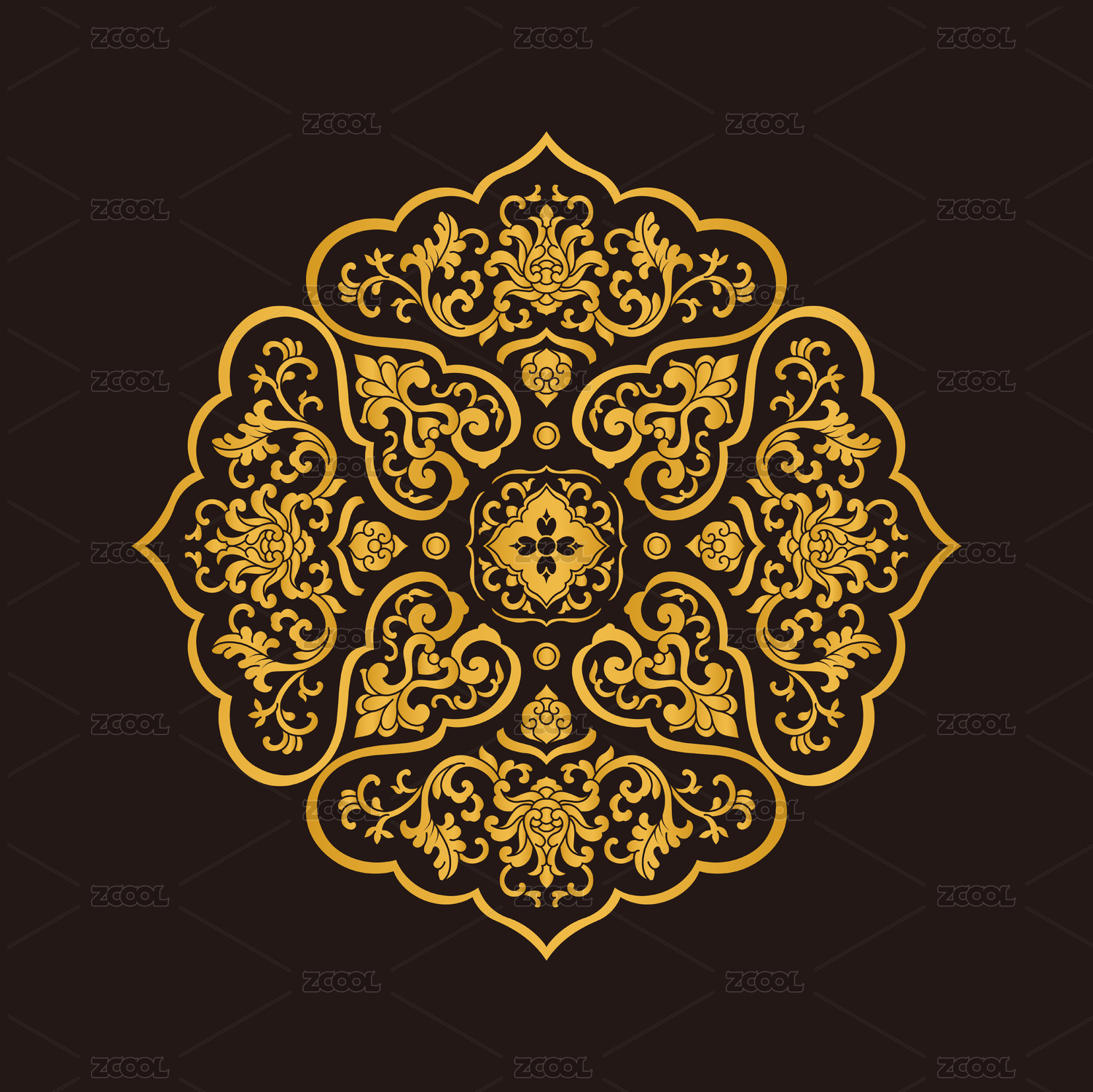 金色传统花纹图案,黑色背景