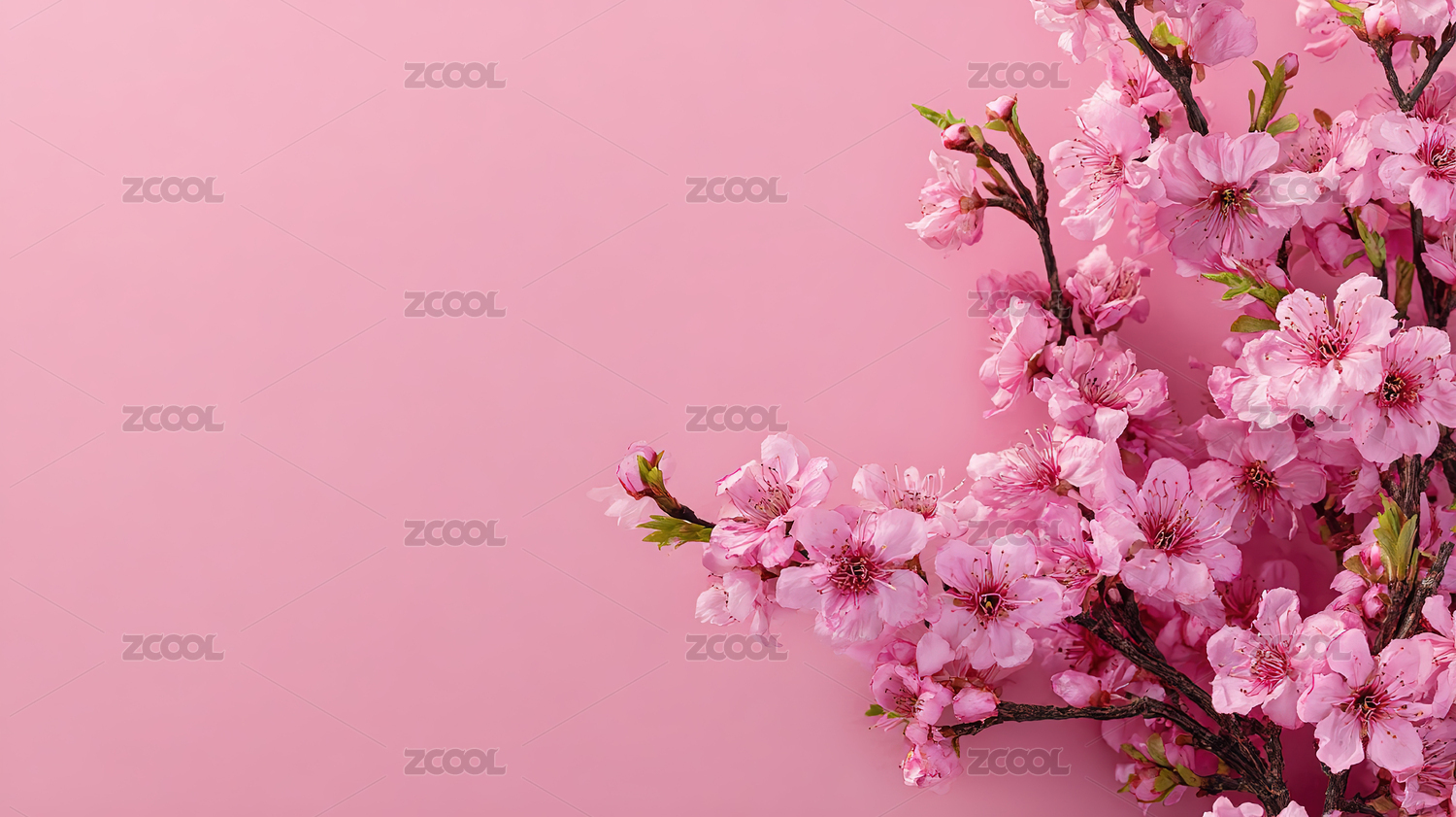 粉色背景上一枝粉色花朵装饰图案
