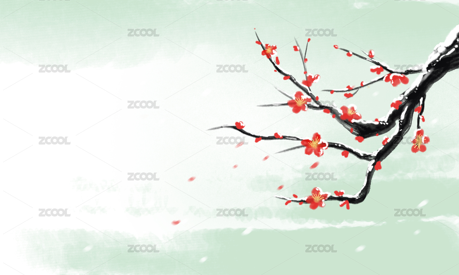 中国风抽象艺术中国传统入冬梅花诗意水墨画