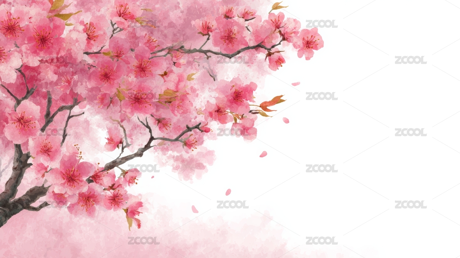 古风,春季,桃花,花,水墨,水彩,书画,竹帘,春天,节气