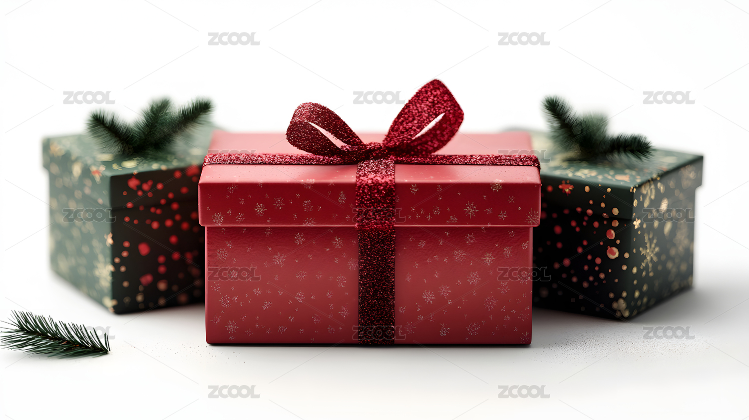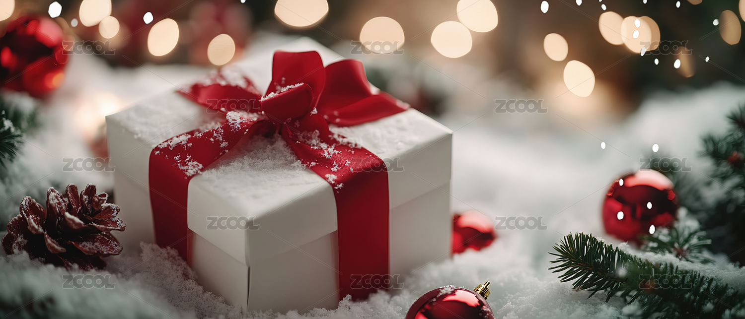 圣诞礼物盒 红丝带 节日氛围