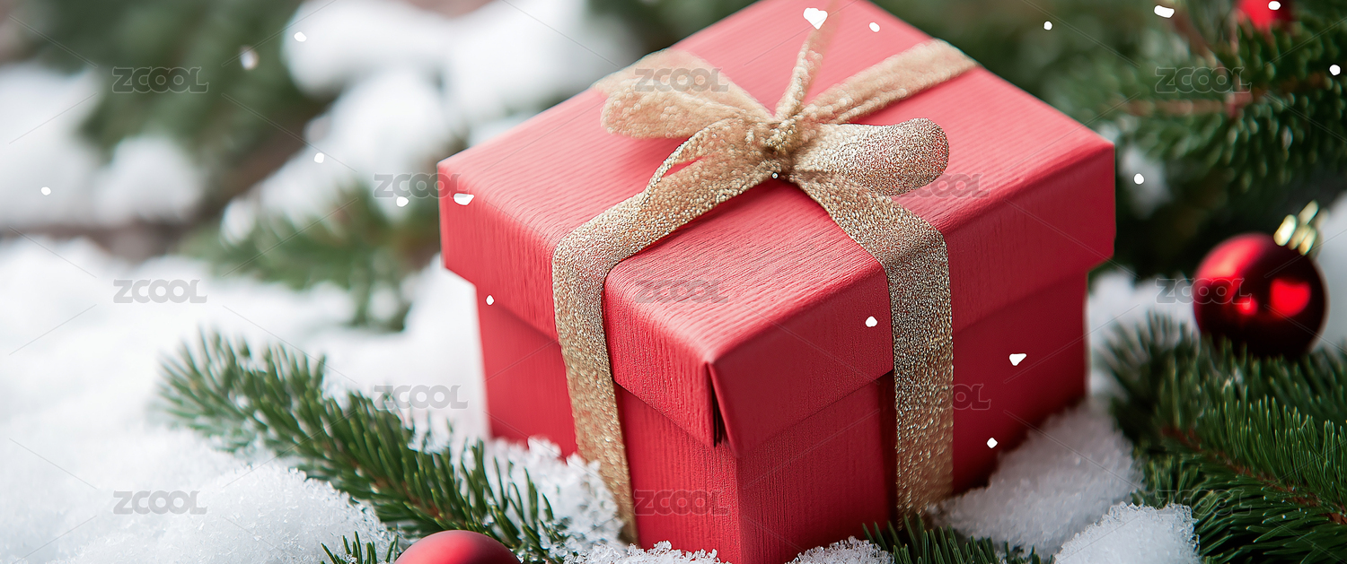 雪中的红色圣诞礼盒