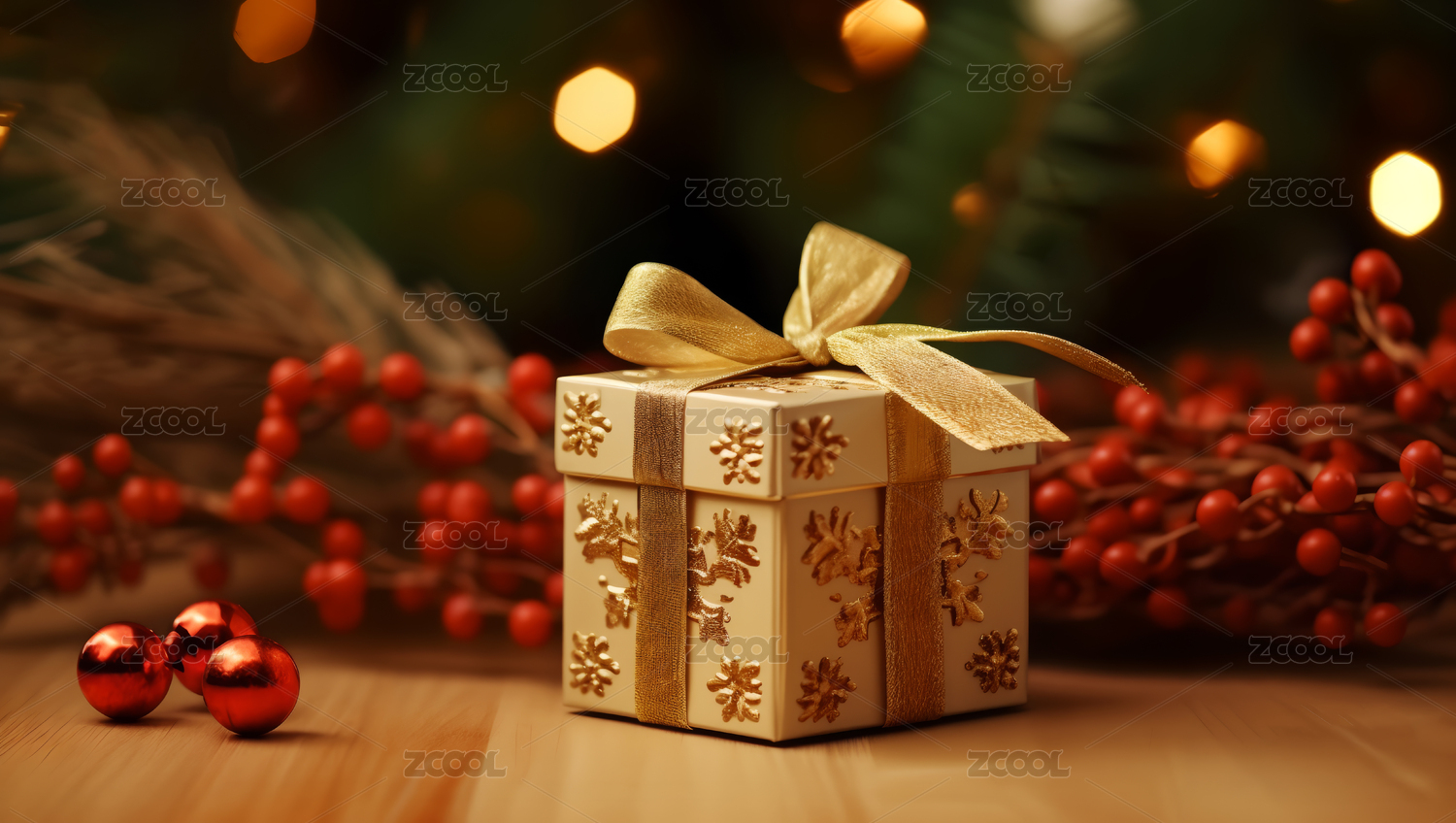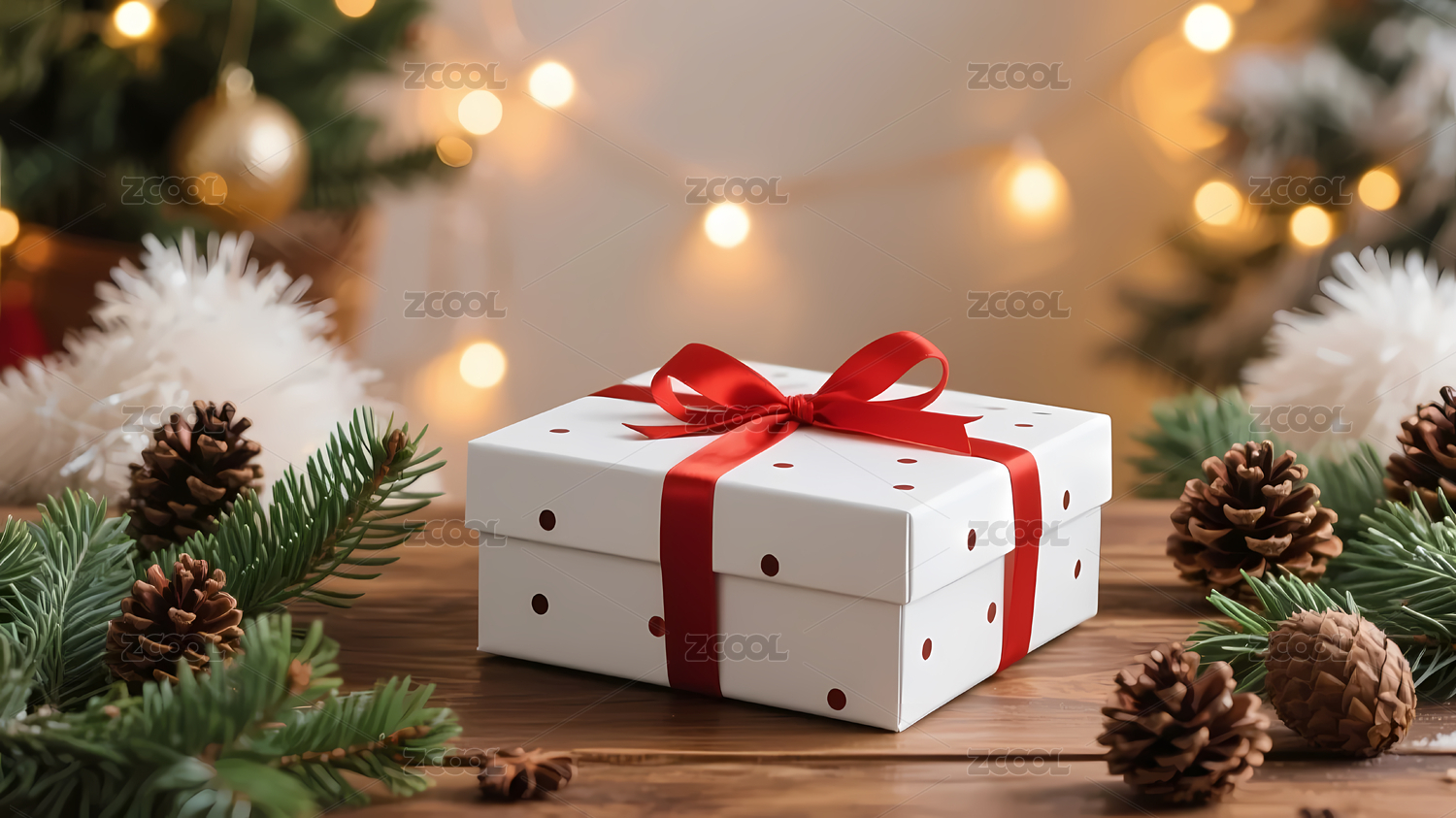 红色礼盒与圣诞装饰