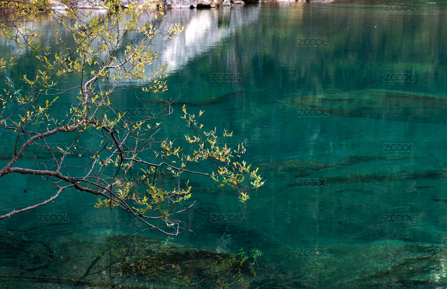 四川,阿坝,九寨沟,秋天,深秋,水,海子,湖水,水面,黄叶