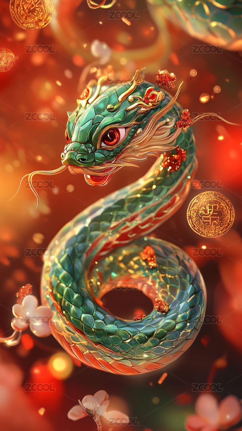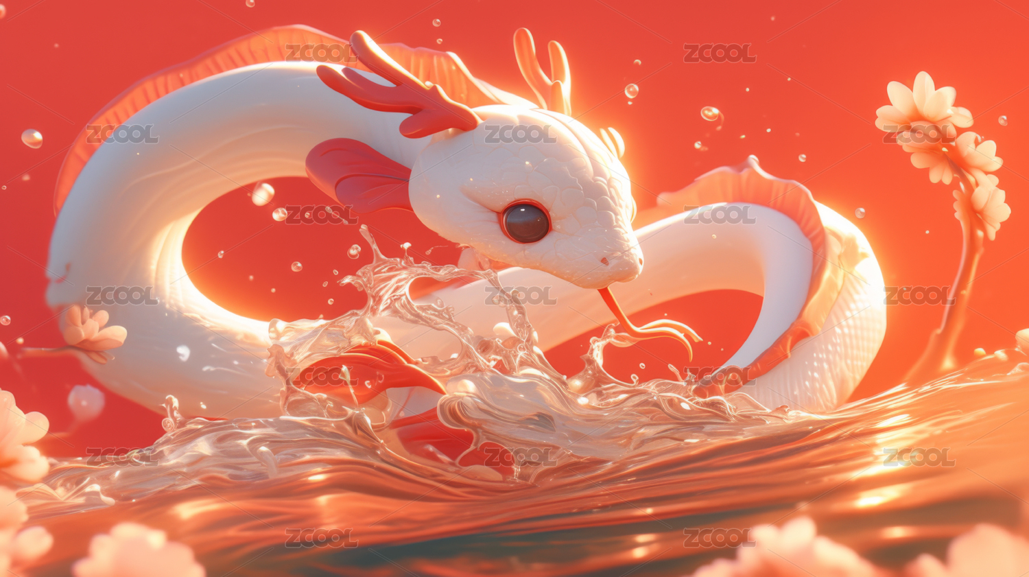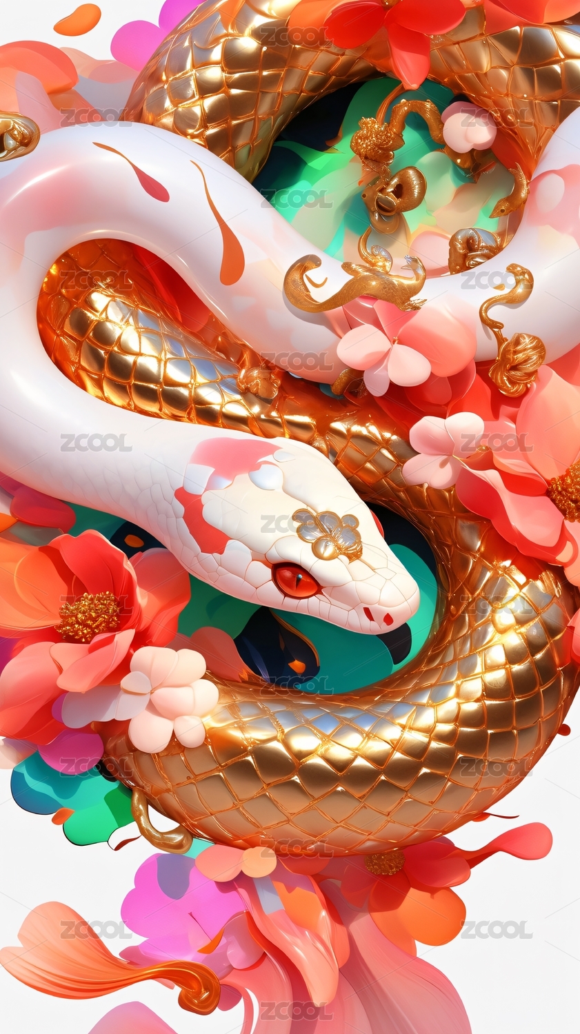 无人,创造力,抽象,背景,AI数字艺术,绘画插图,插画,发光,可爱,小蛇