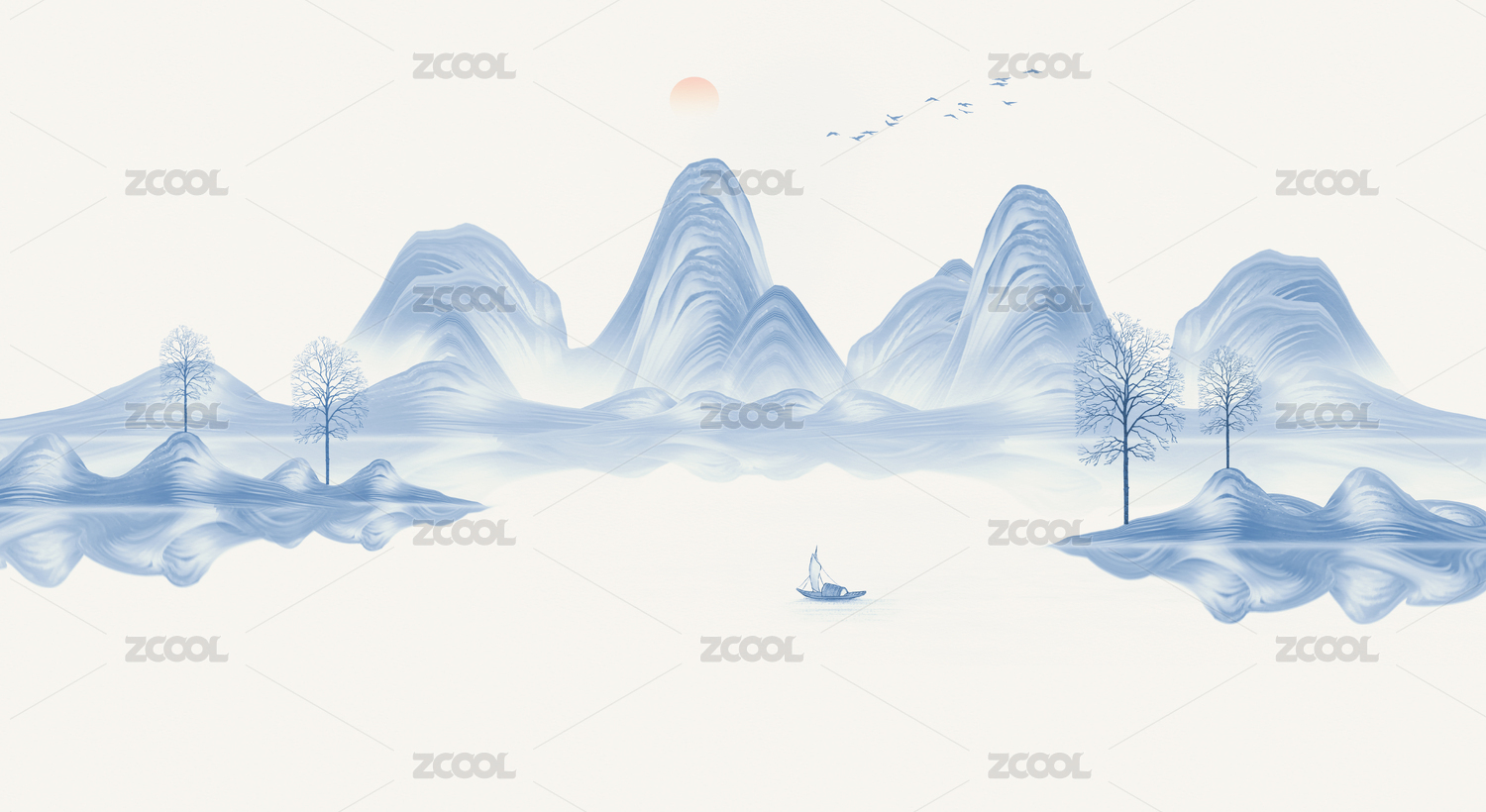 中国风意境水墨山水画 淡雅水墨山水背景图