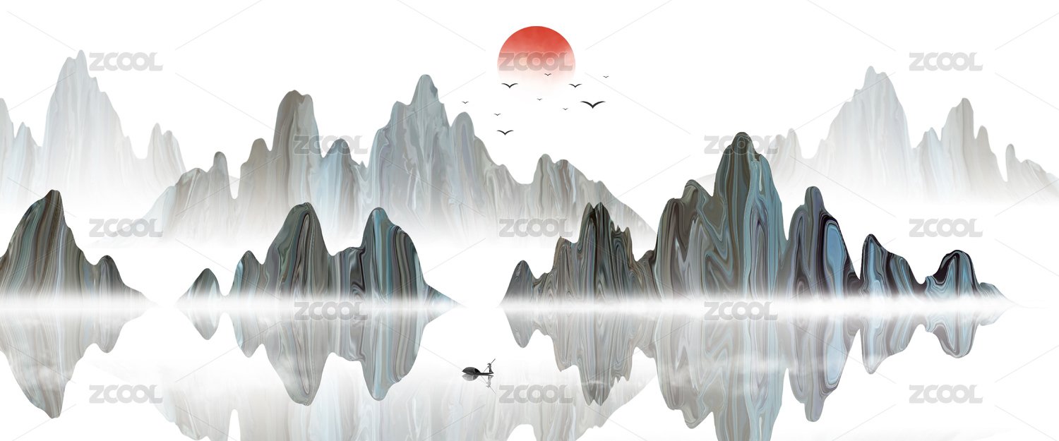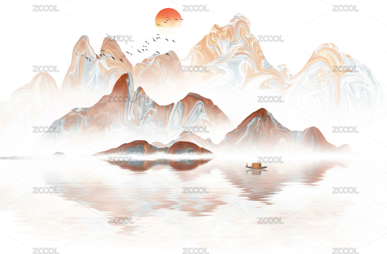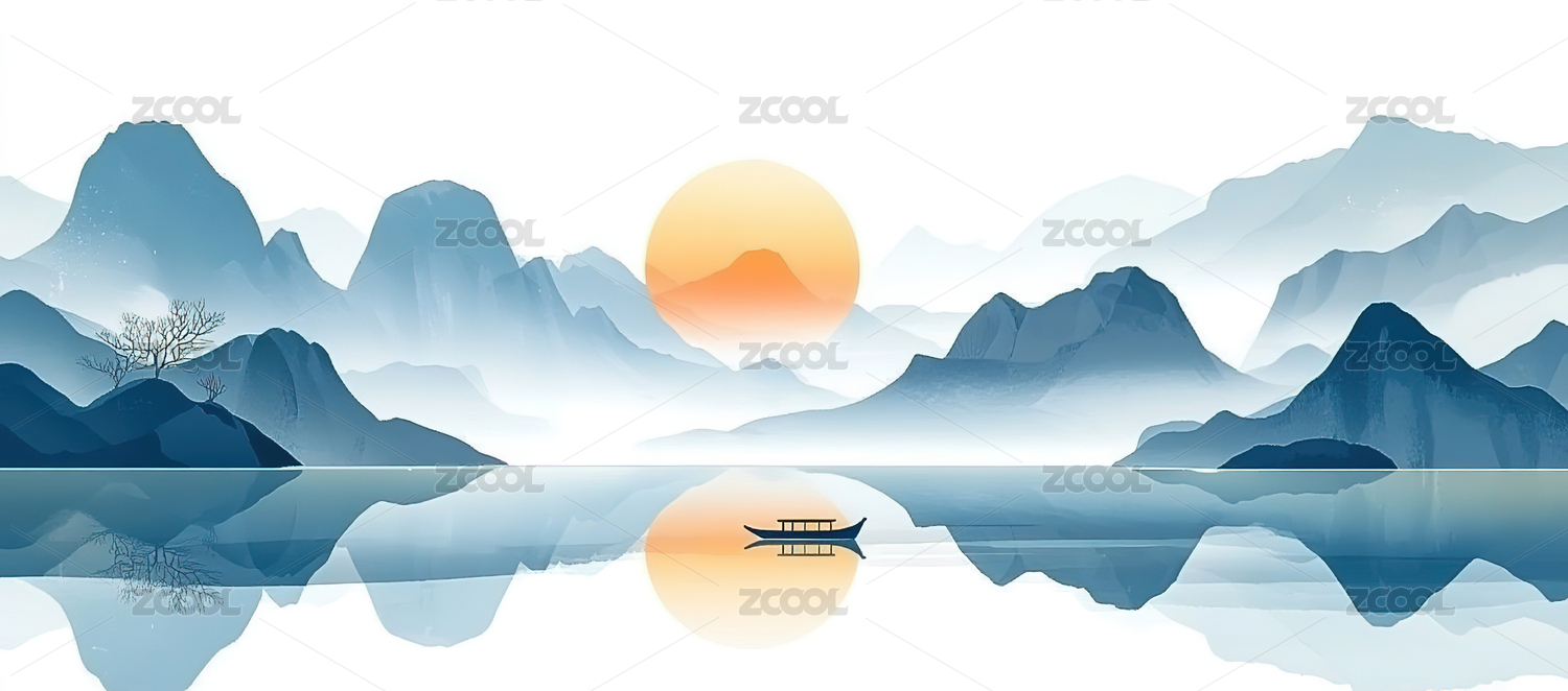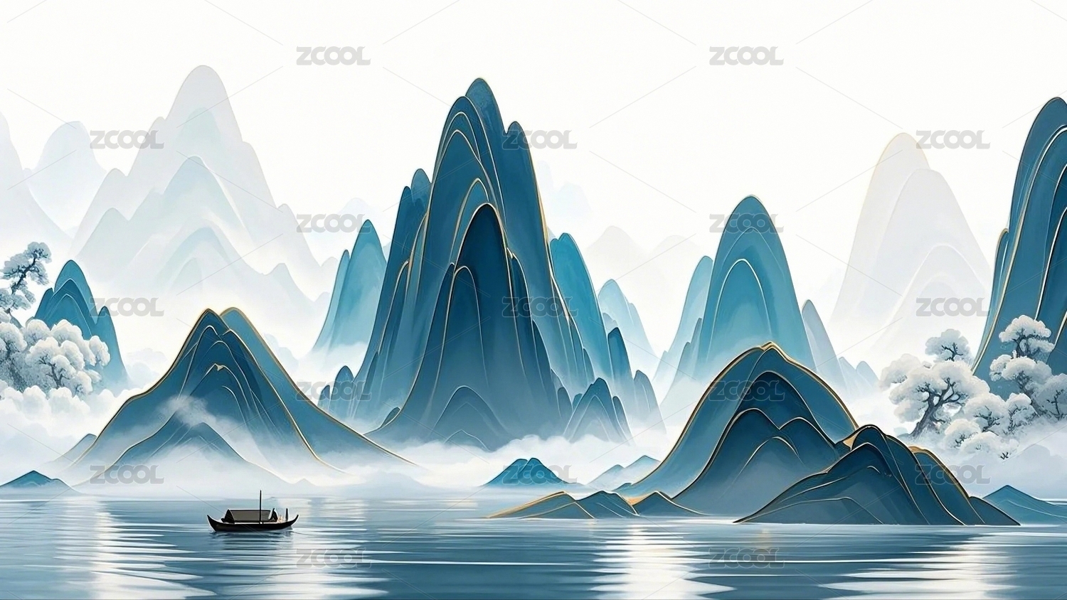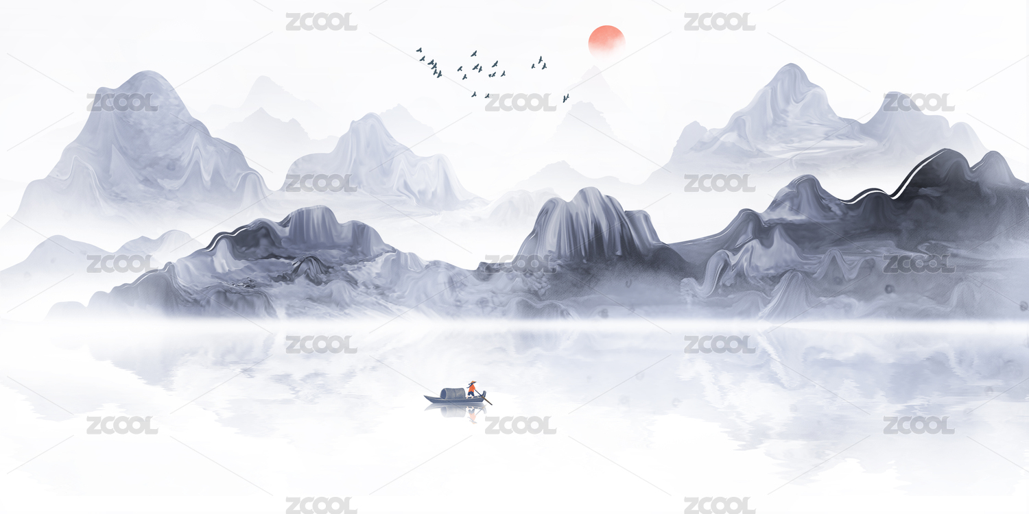 中国风,水墨画,山水画,新中式,背景,底图,插画,手绘,意境,淡雅