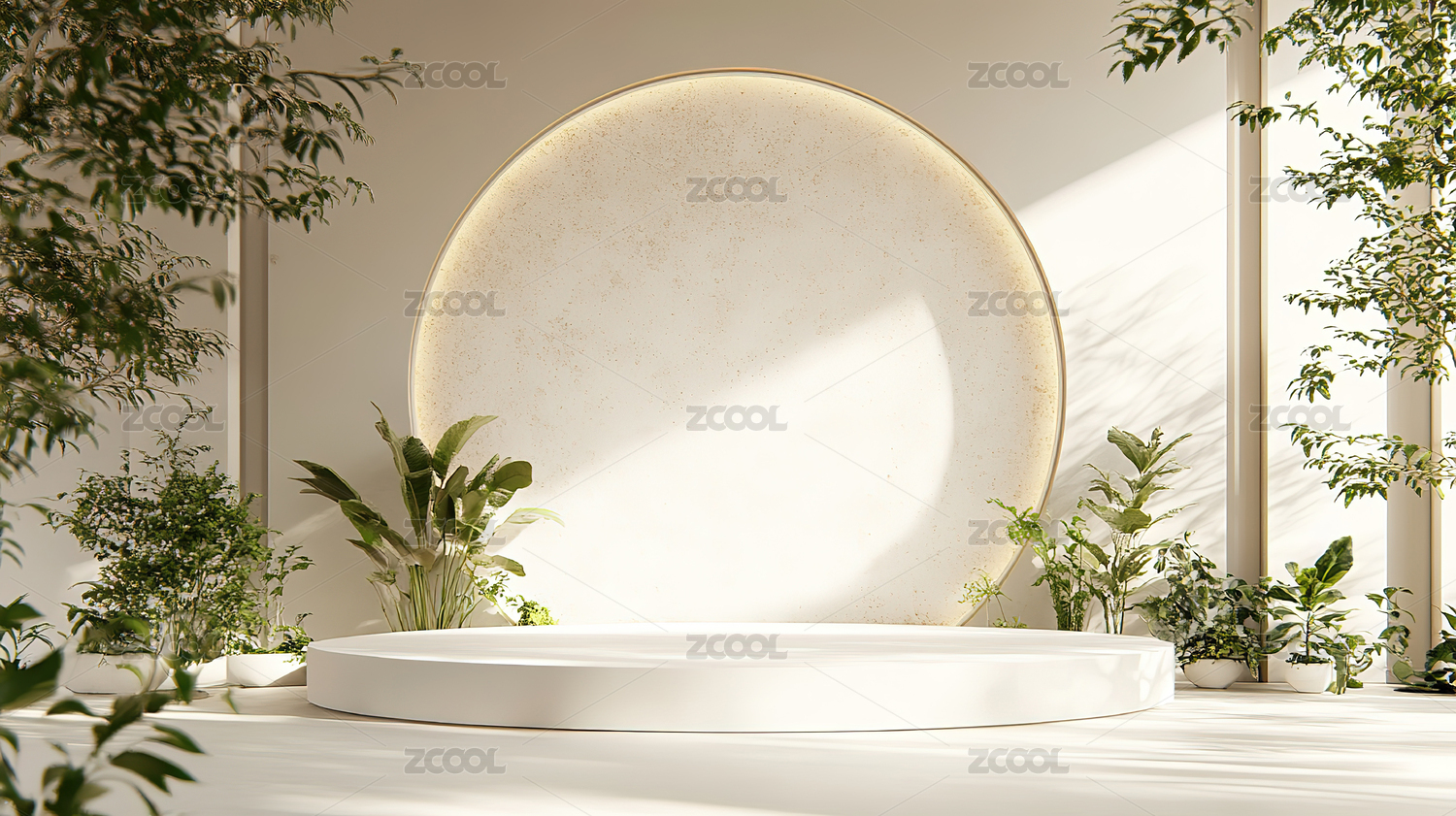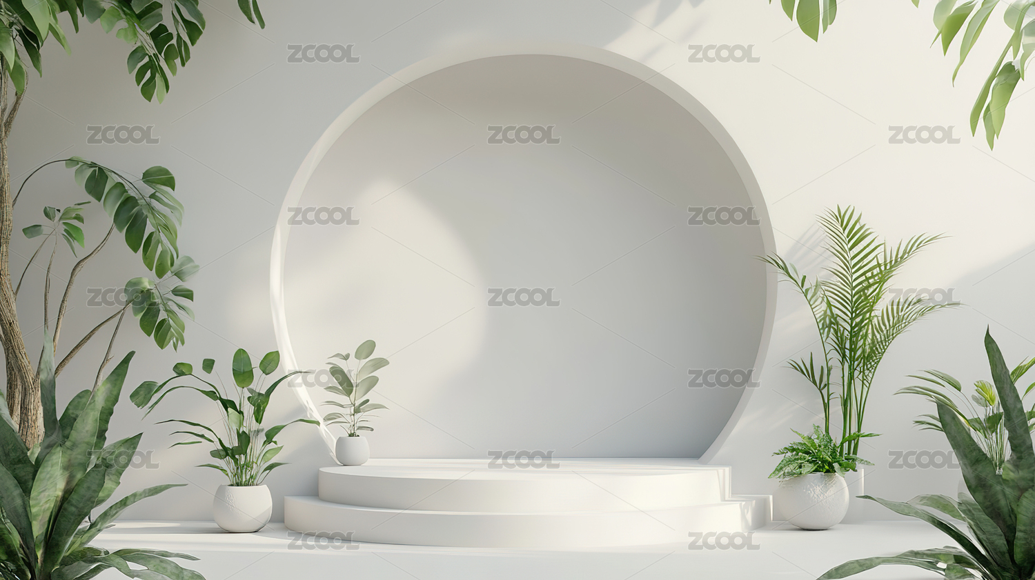 设计,植物,底座,圆形,极简,清新,展台,电商