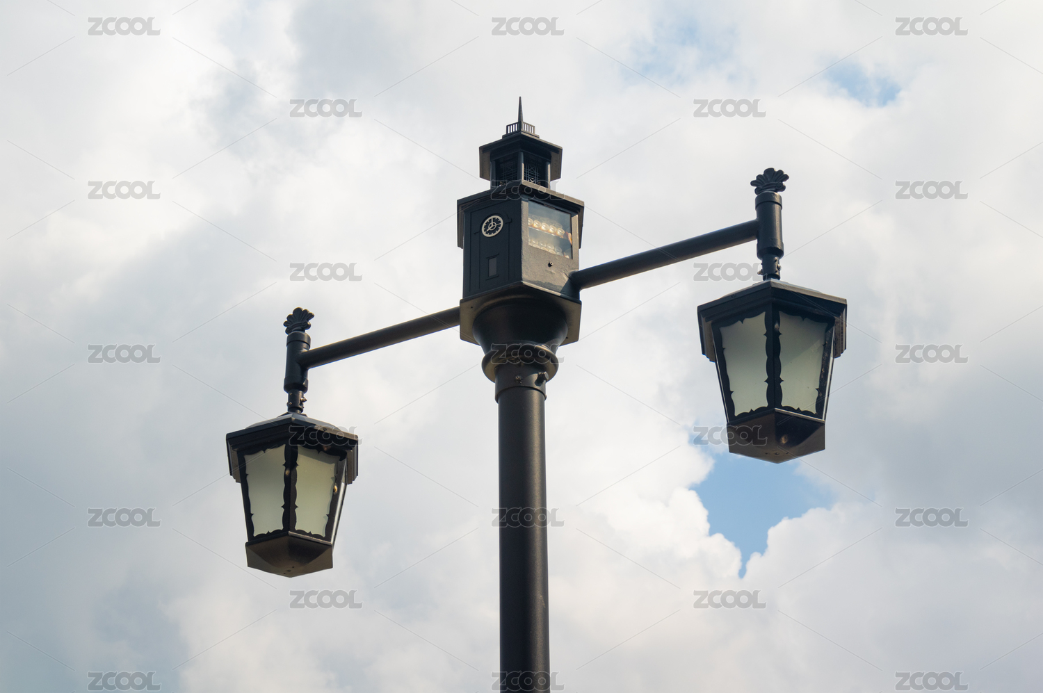 双头古典路灯仰拍