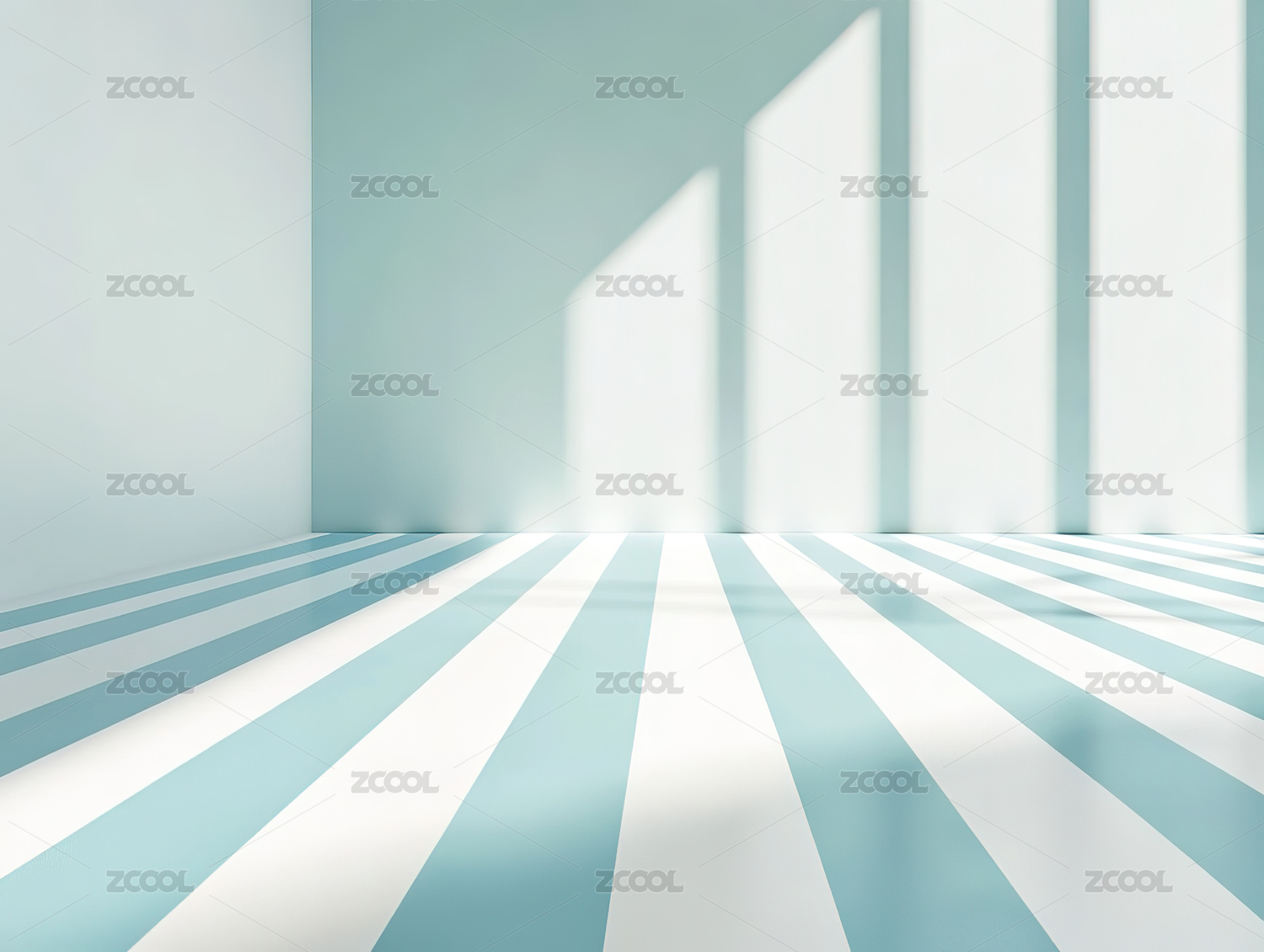 条纹墙与光影交错的空旷房间