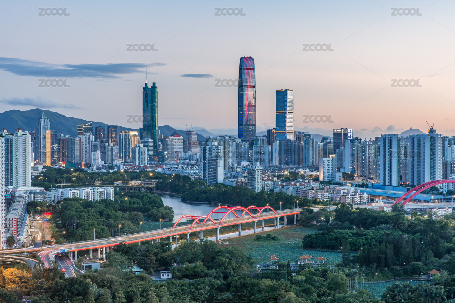 深圳市罗湖区洪湖公园与罗湖CBD天际线
