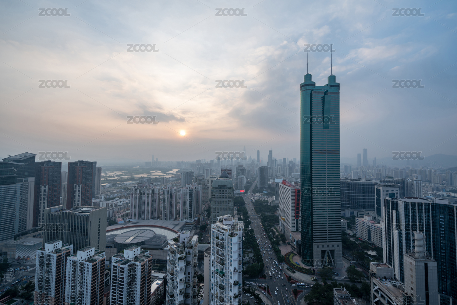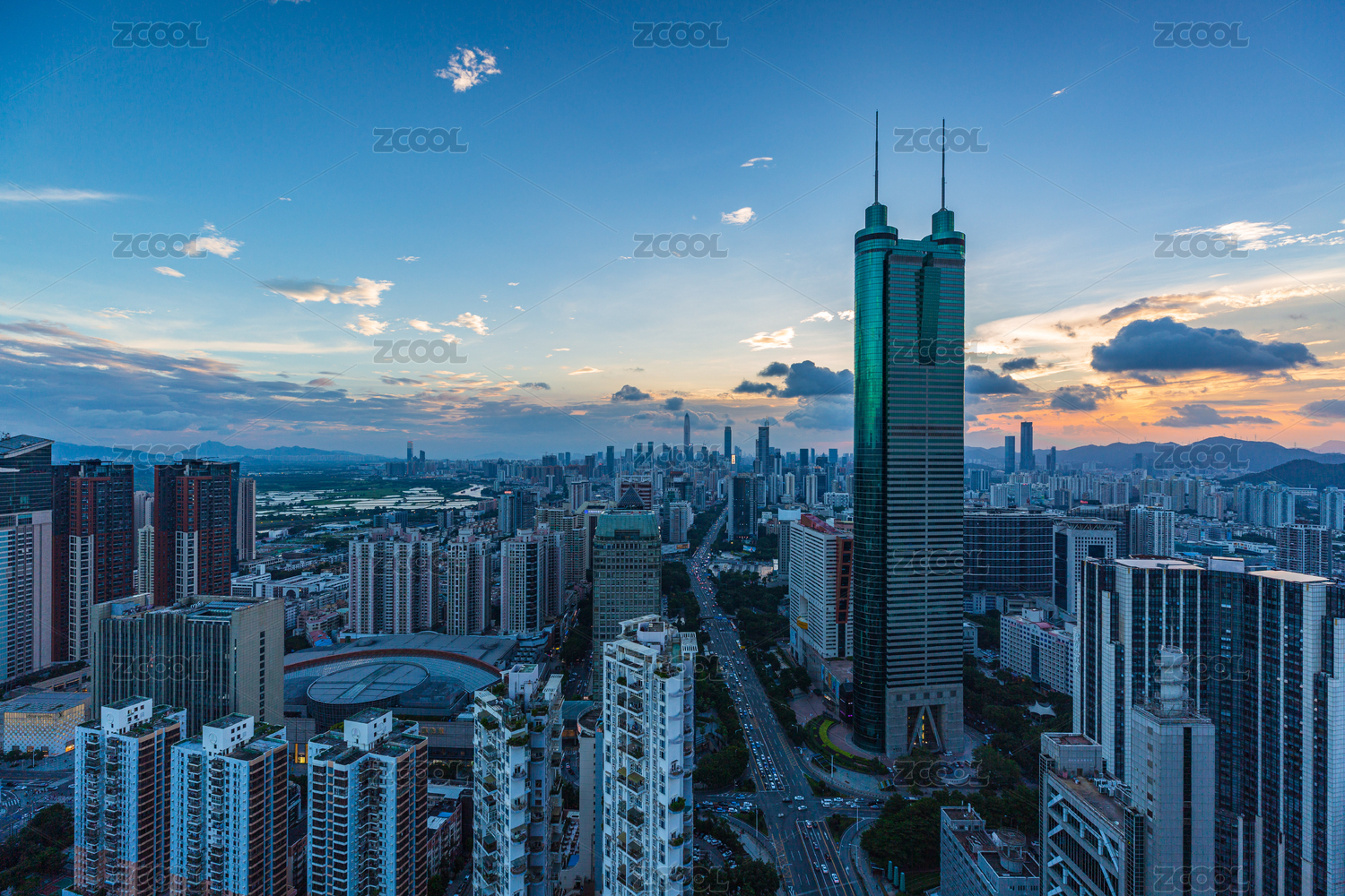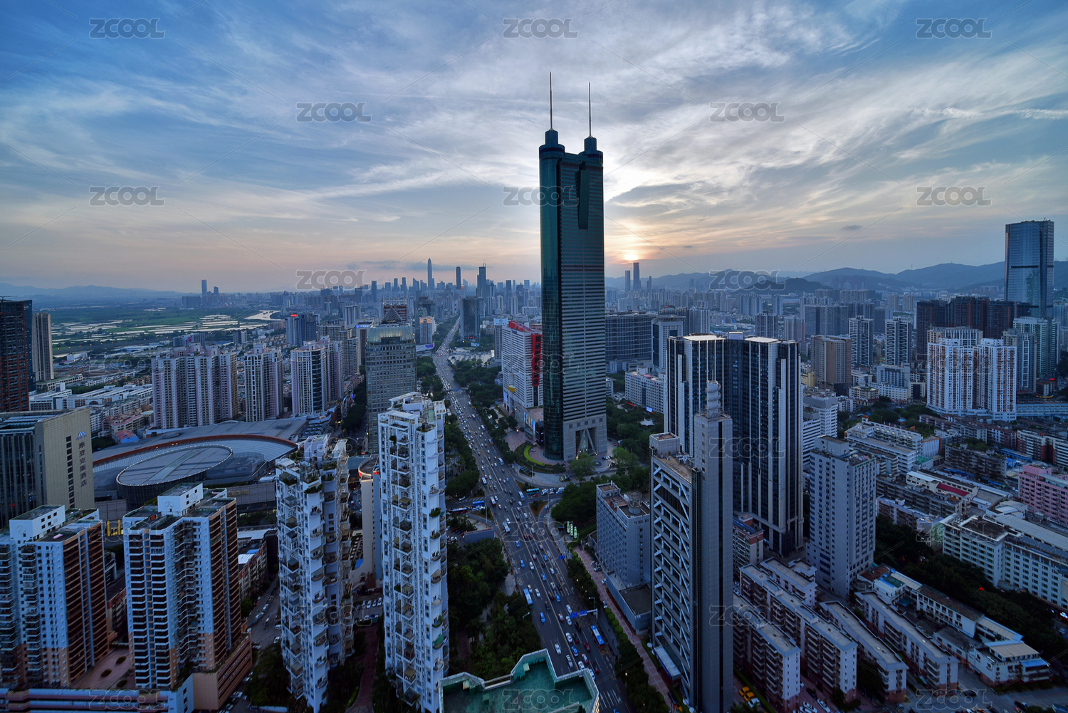 中国深圳市深圳罗湖区地王大厦傍晚时分