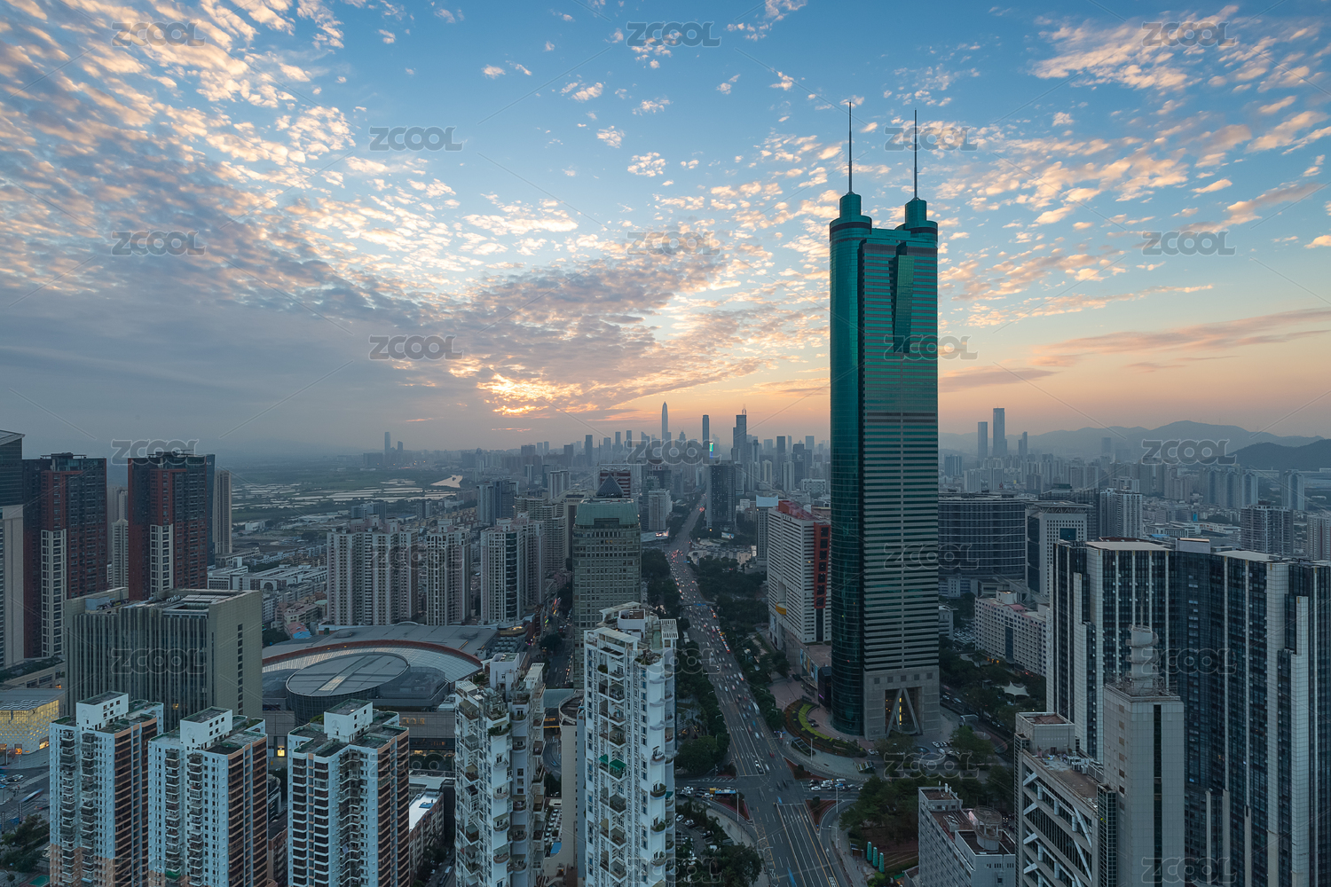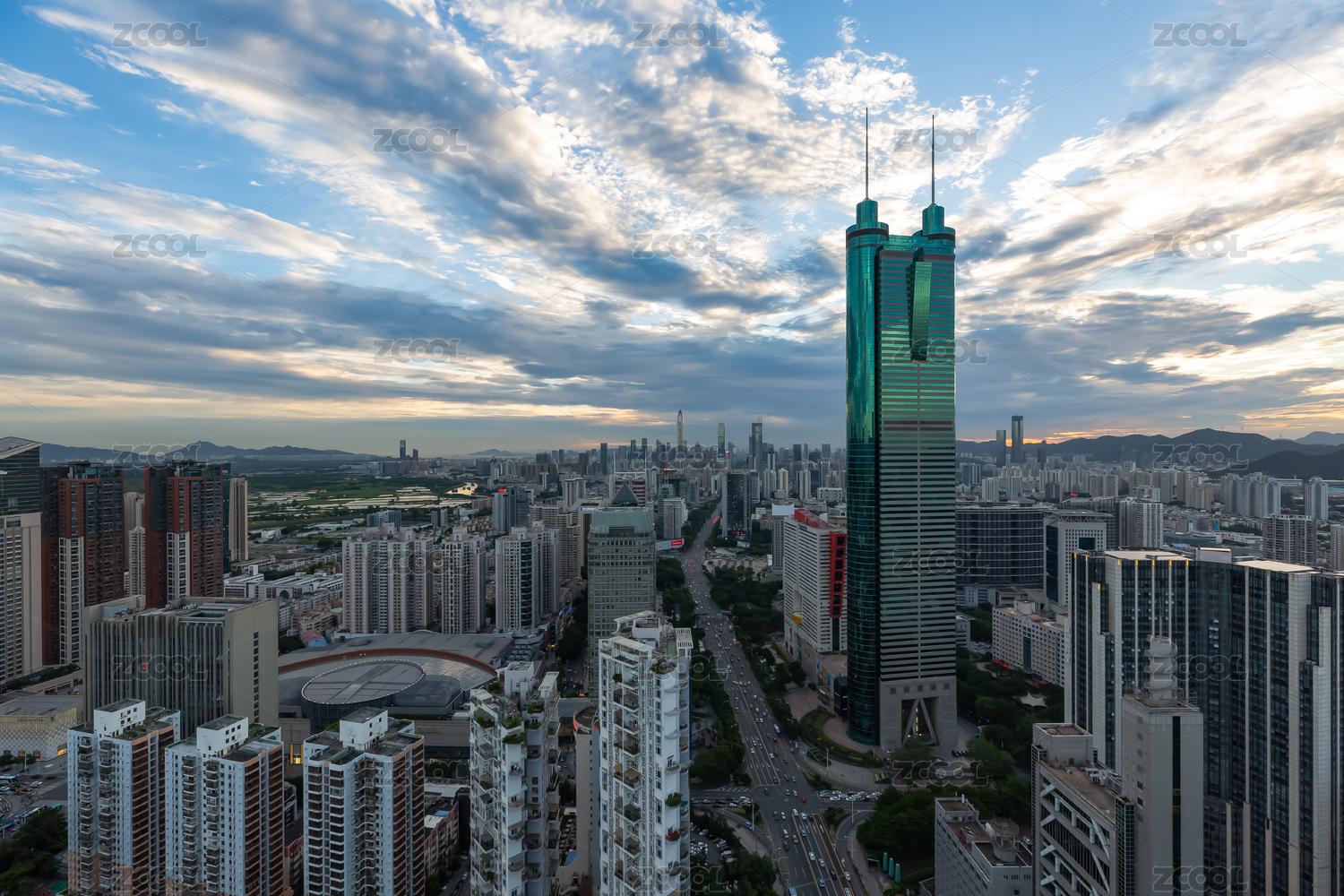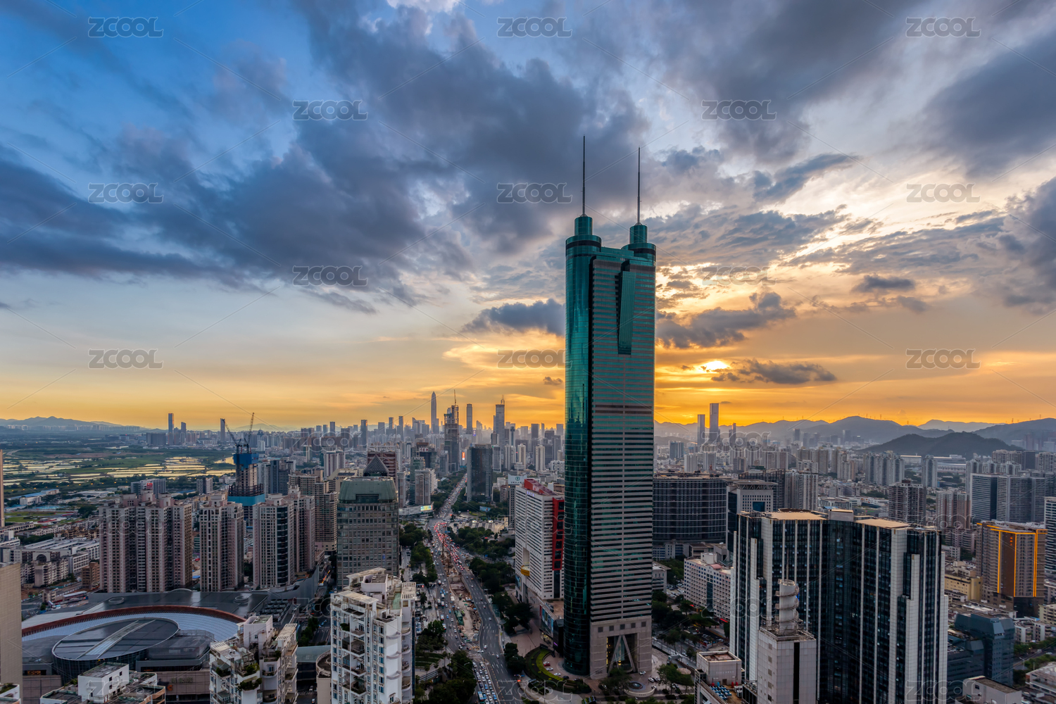 中国深圳市深圳罗湖区地王大厦傍晚时分