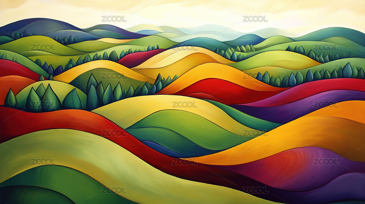 自然,高山,风景,AI数字艺术,地形,户外,天空,插画,绿色,抽象