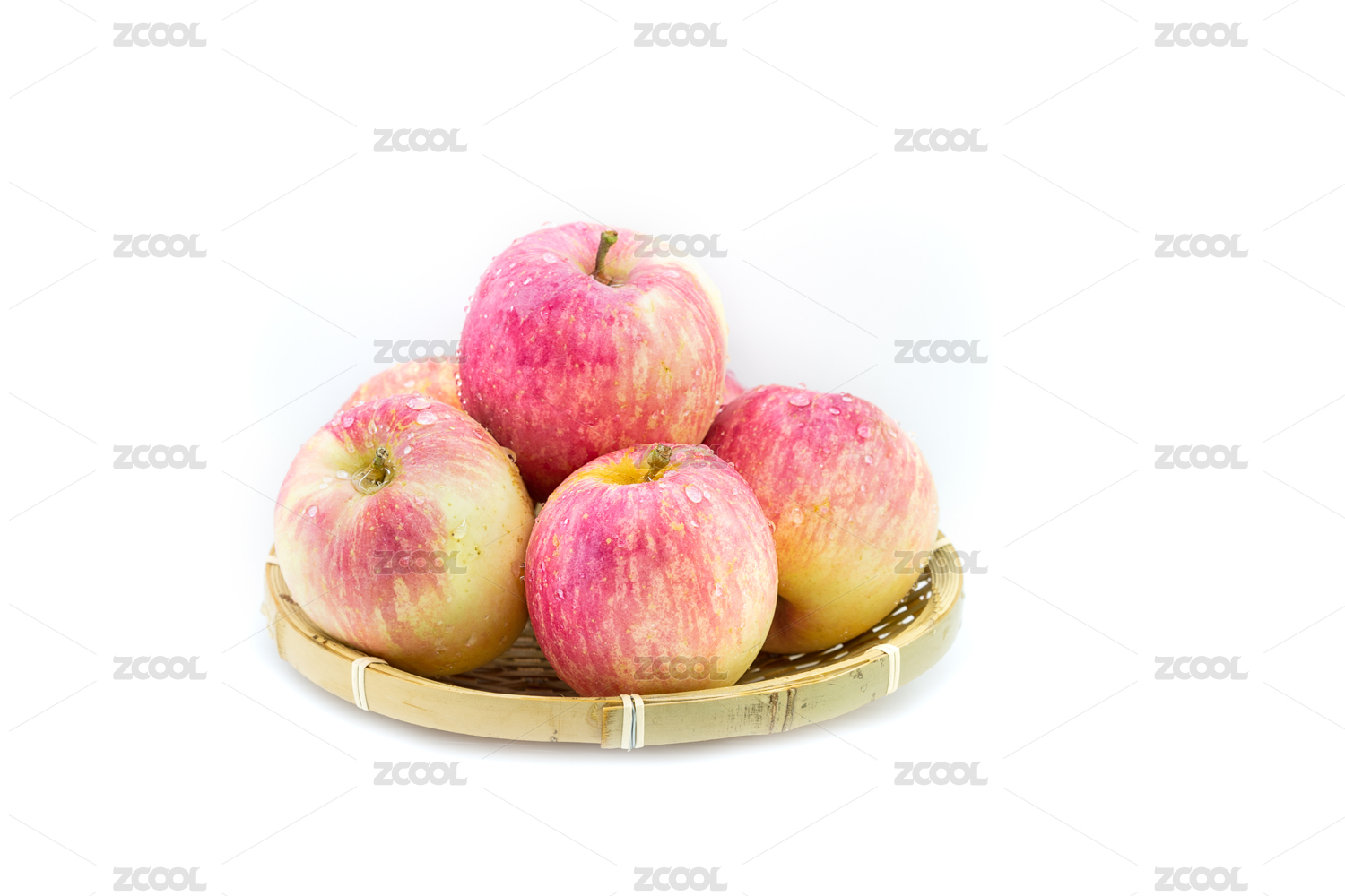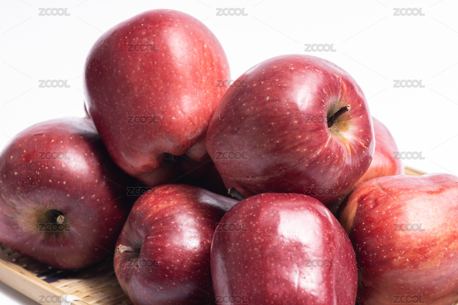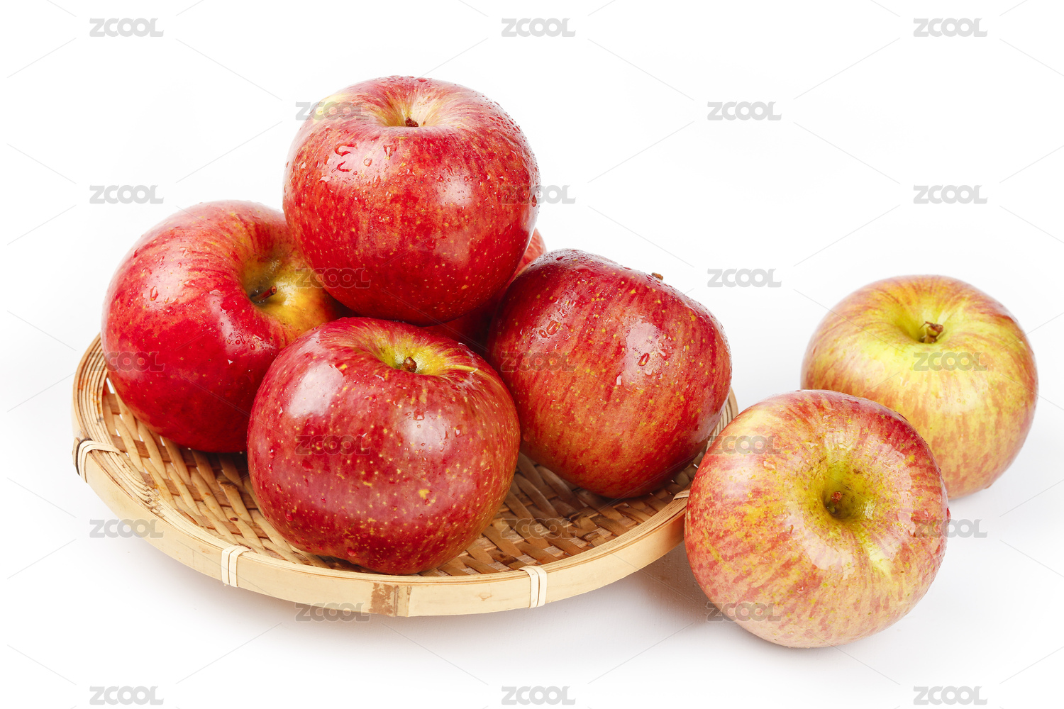 白色背景果篮里装的一篮红色的新鲜苹果侧面图