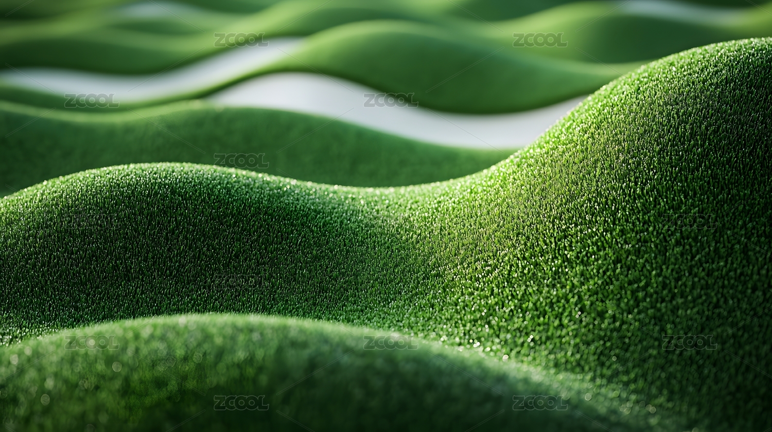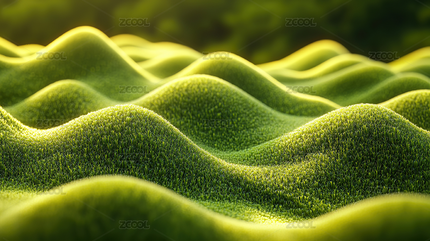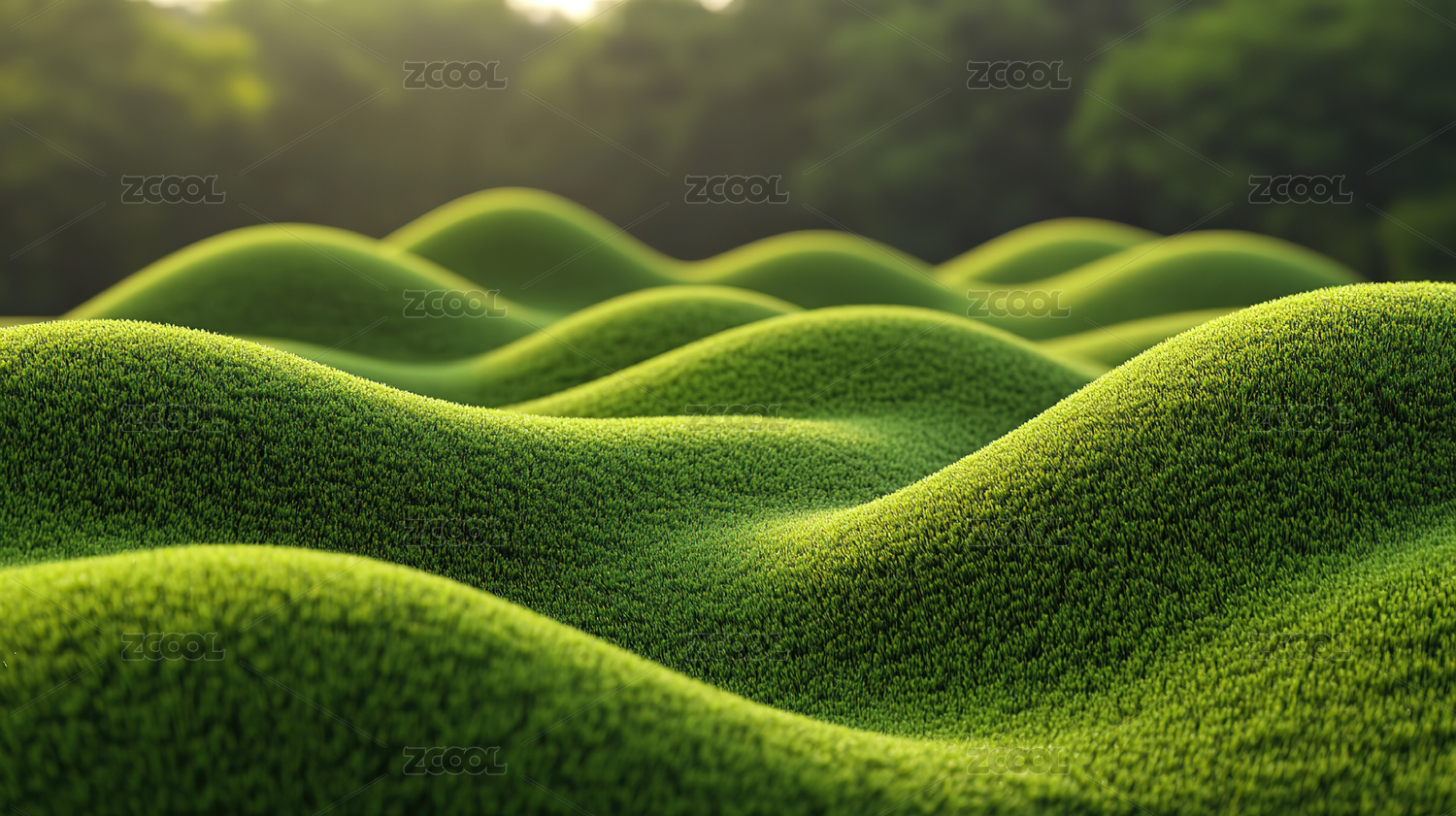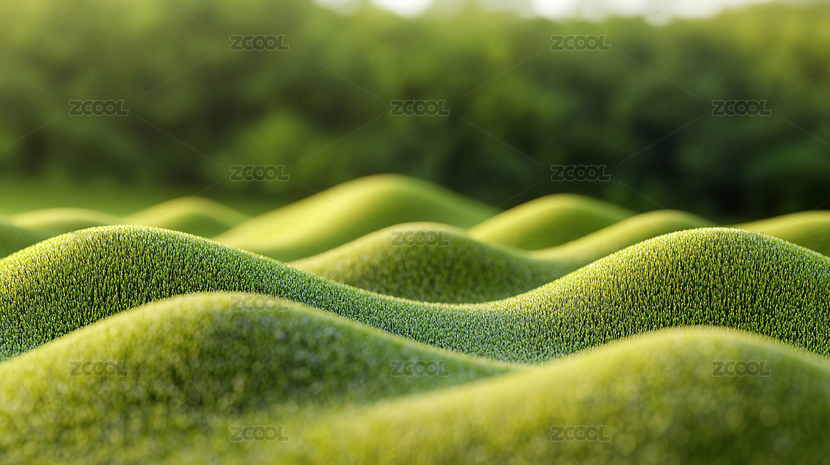 连绵起伏的翠绿山丘上覆盖着闪烁的露珠,